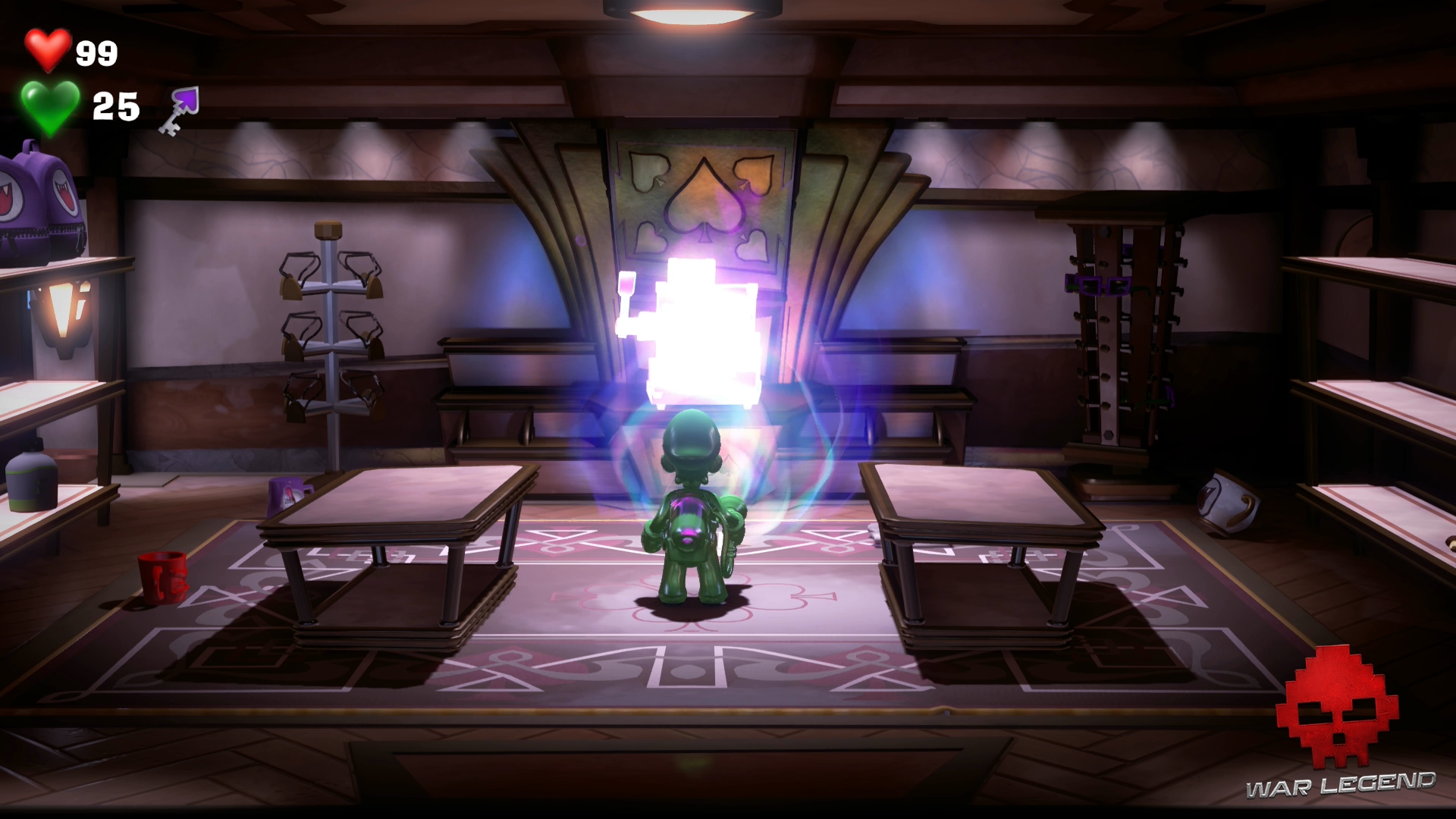 Une fois dans la boutique, vous vous rendez compte qu’il n’y a pas de caisse enregistreuse. Si vous avez l’œil, vous verrez qu’il y a une ombre projetée sur le comptoir. Utilisez le Révéloscope et aspirez les particules Boo. Utilisez la clé et voilà la clé du Bureau de la sécurité.