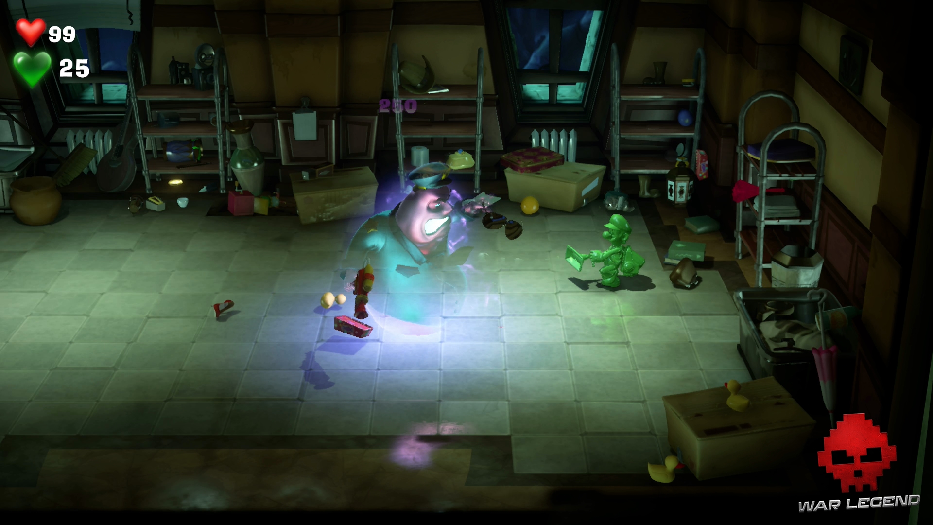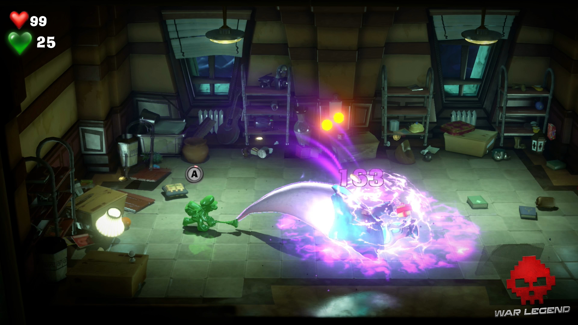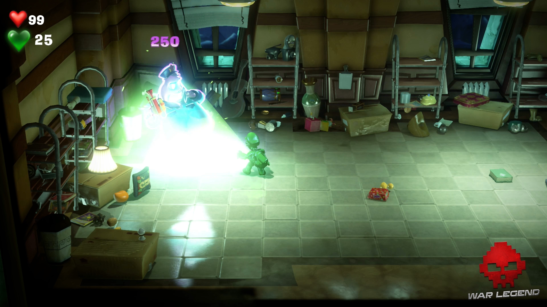 Après avoir ouvert la caisse, un nouveau fantôme vous attaque, mais il possède des lunettes de soleil. Aspirez les lunettes avant de pouvoir le flasher.