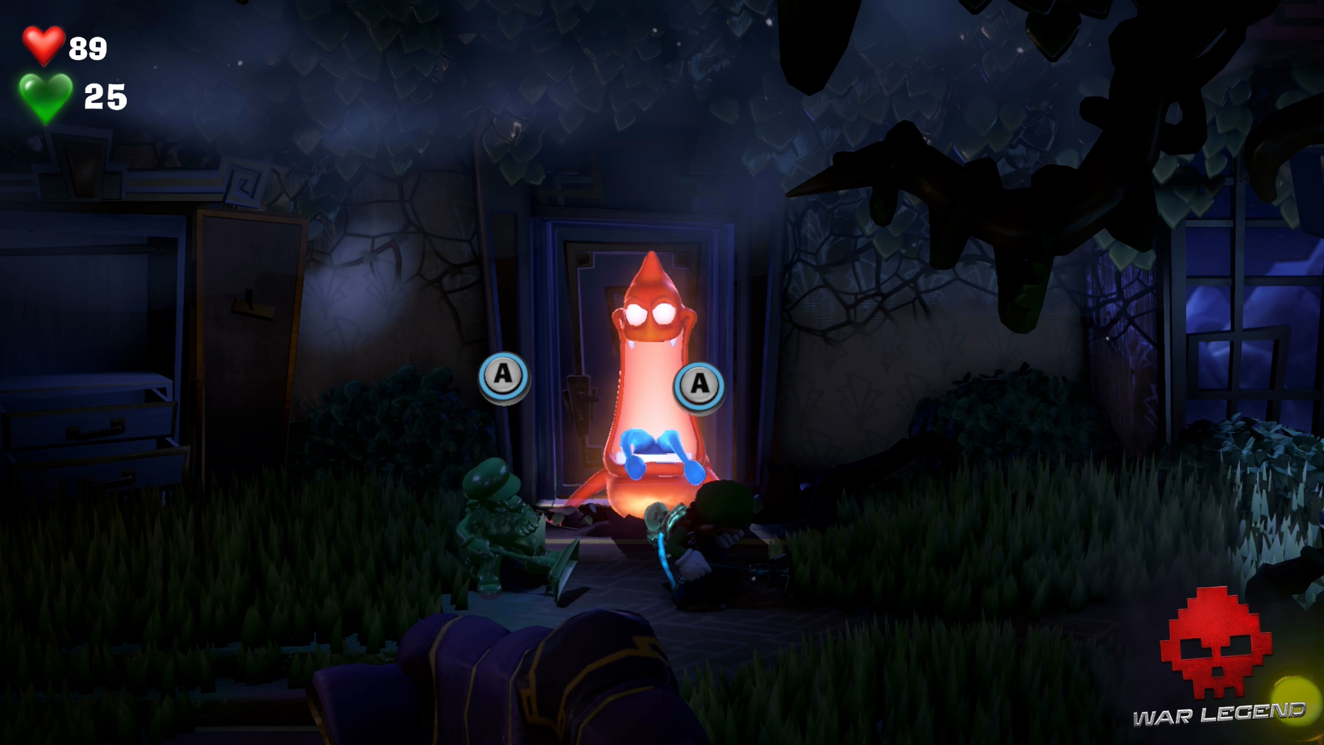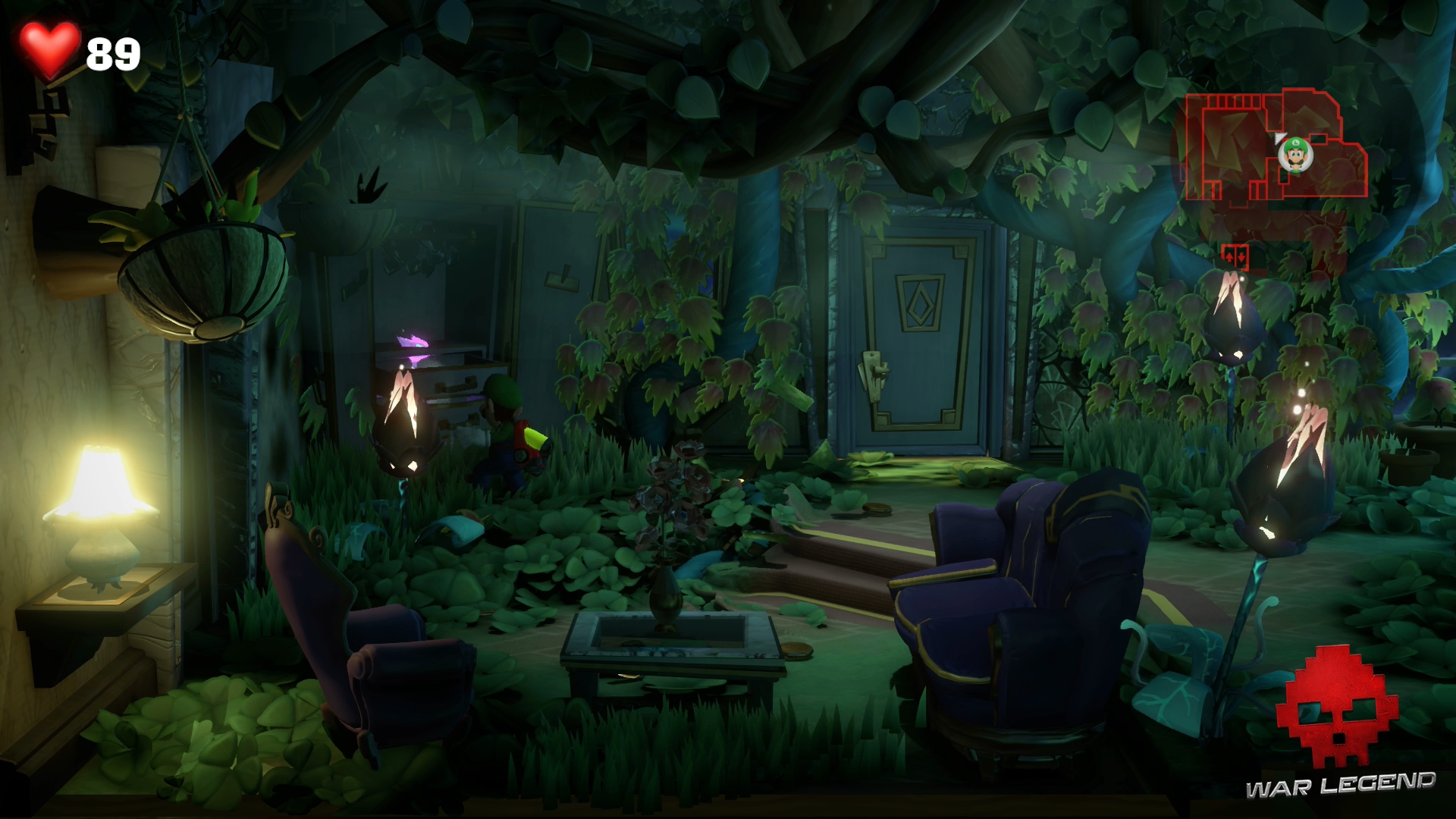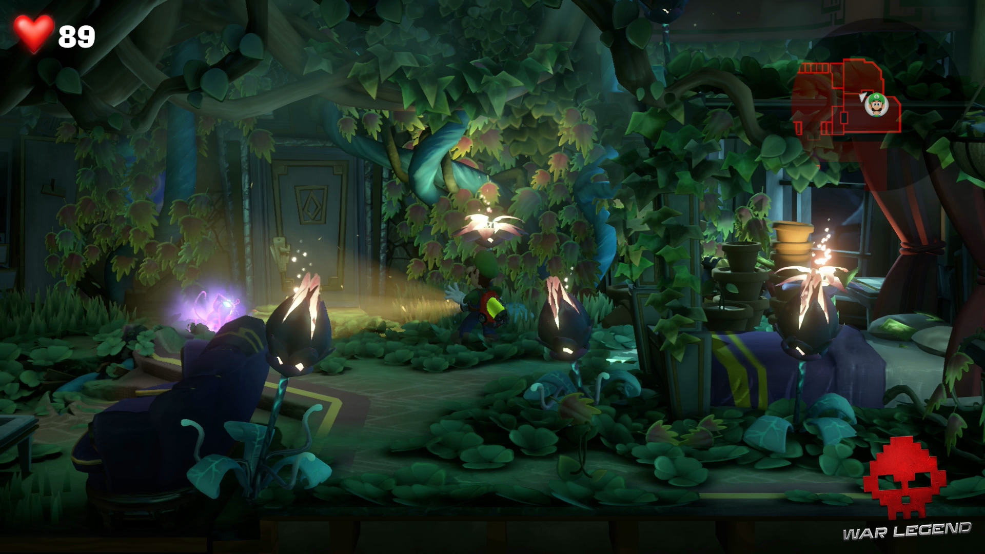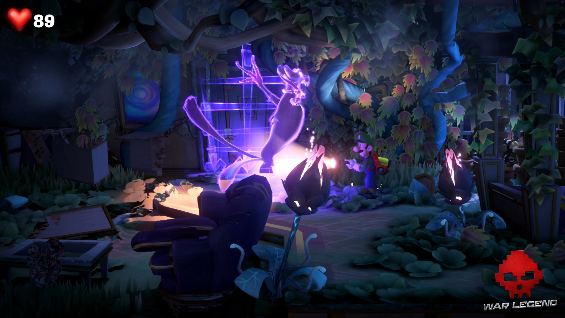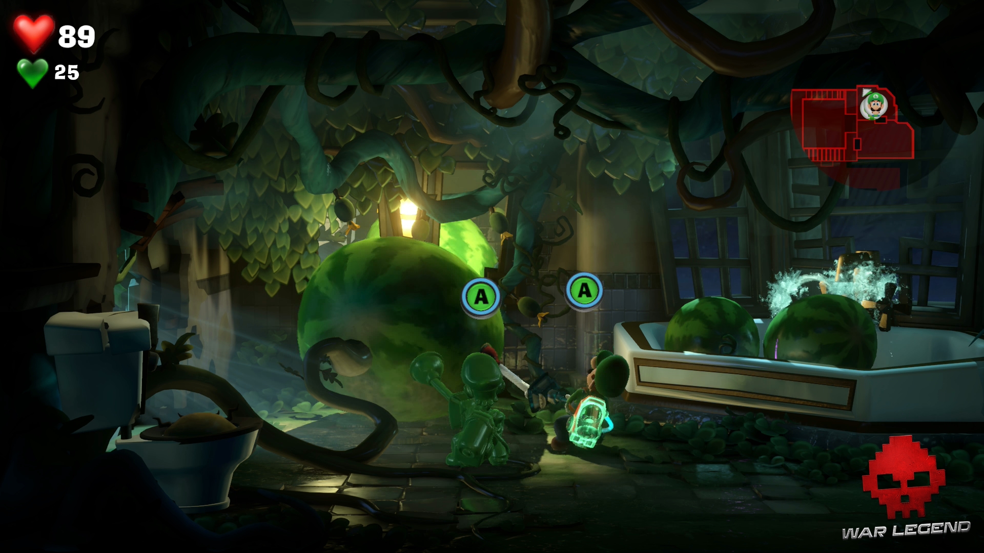 Rentrez dans la chambre suivante à l’étage suivant et rendez-vous à la salle de bain. Luigi se fait attraper par un Léchouilleur. Utilisez Gluigi pour le flasher afin qu’il lâche prise, puis tirez sur ses deux langues en même temps pour le capturer.