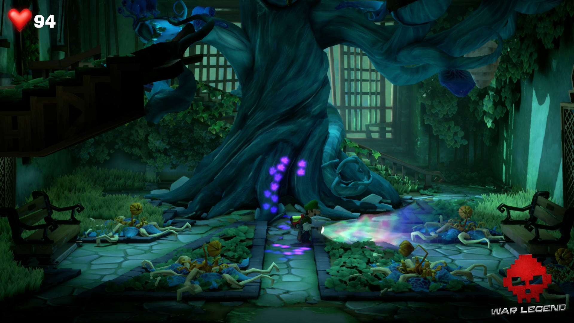 Malheureusement, vous n’en avez pas fini avec lui. Suivez sa trace jusqu’au plateau central et utilisez la plateforme mobile avec Gluigi — en soufflant sur la roue — pour atteindre la bestiole en train de se pavaner sur le portique.