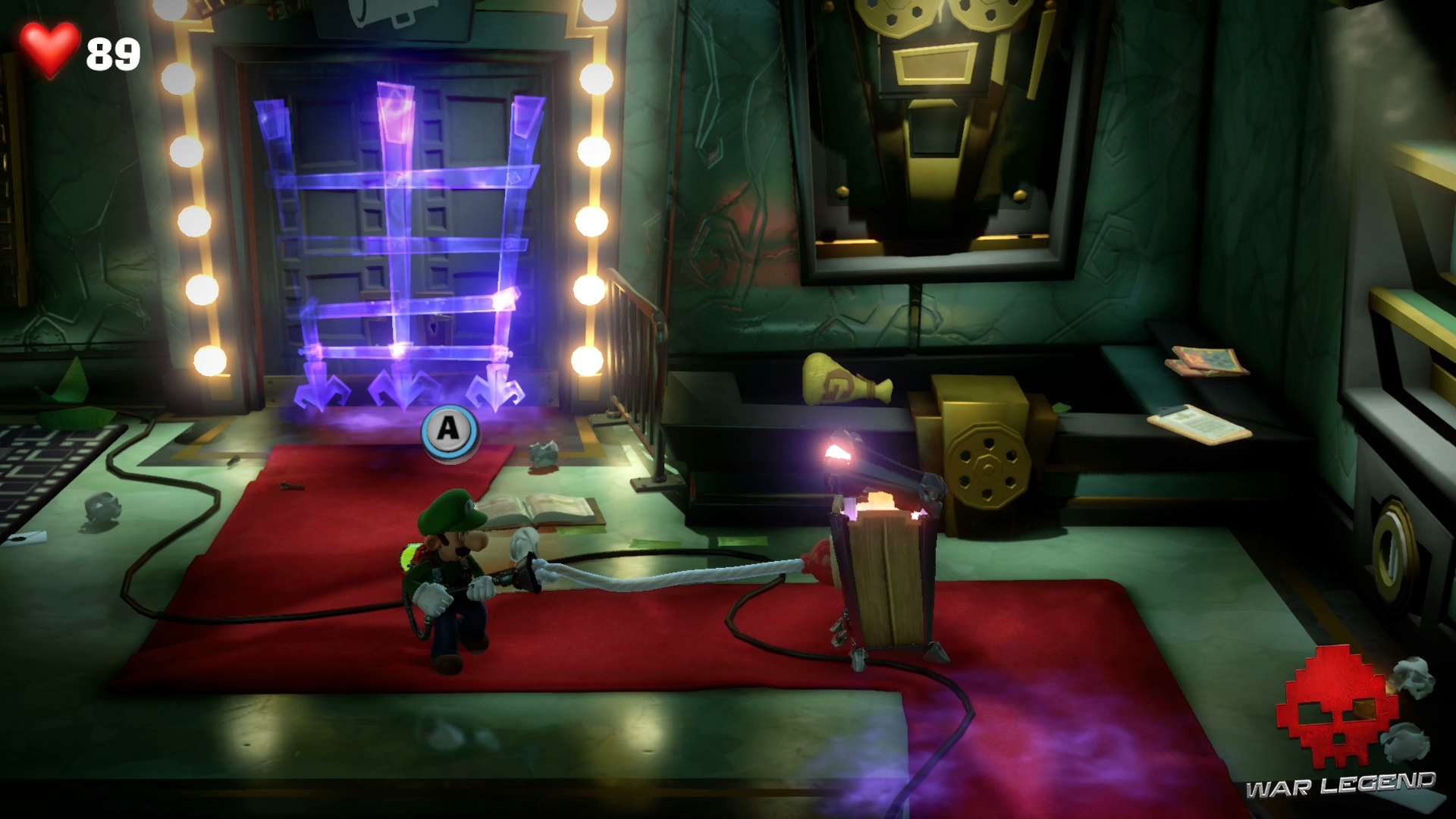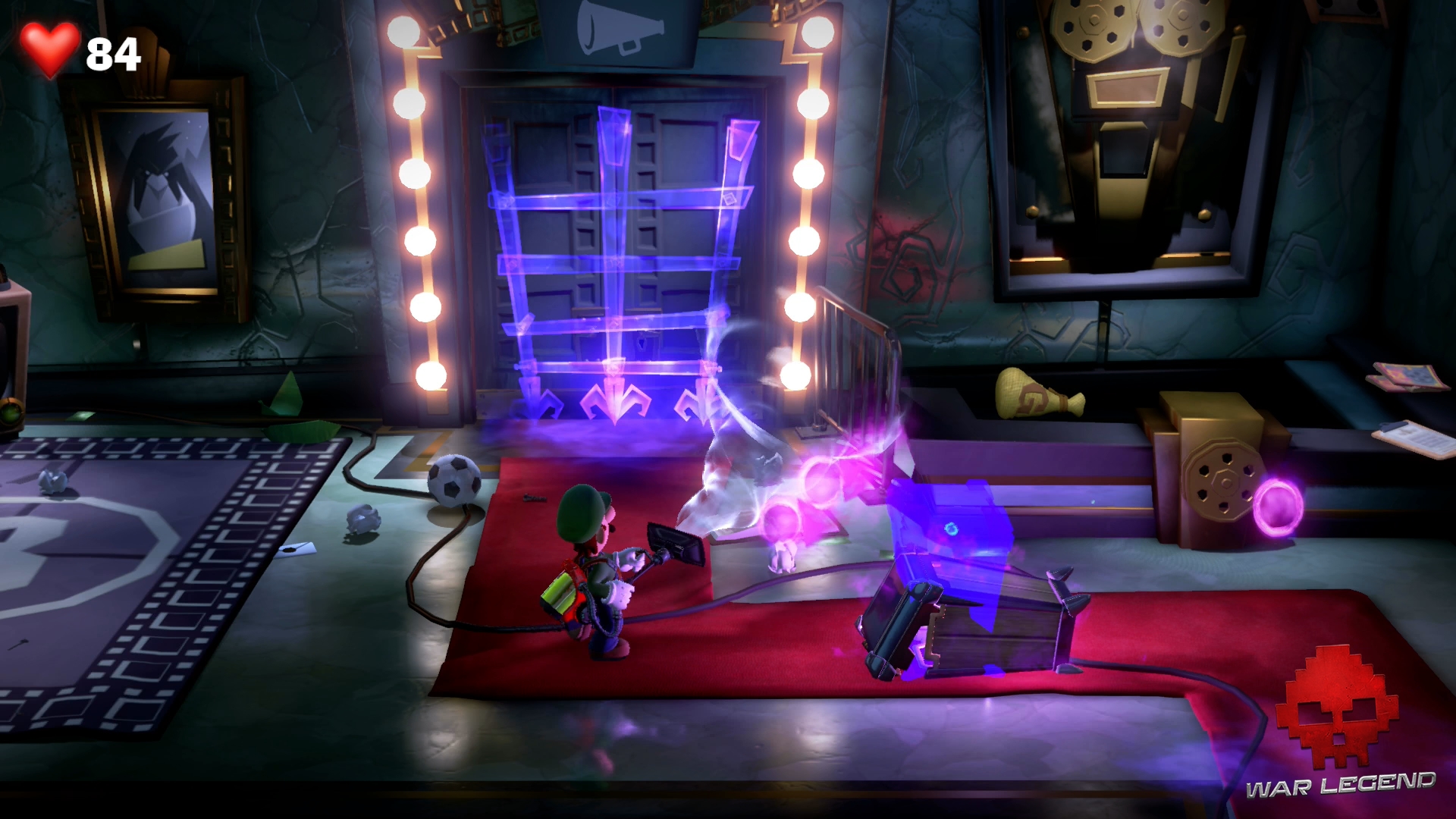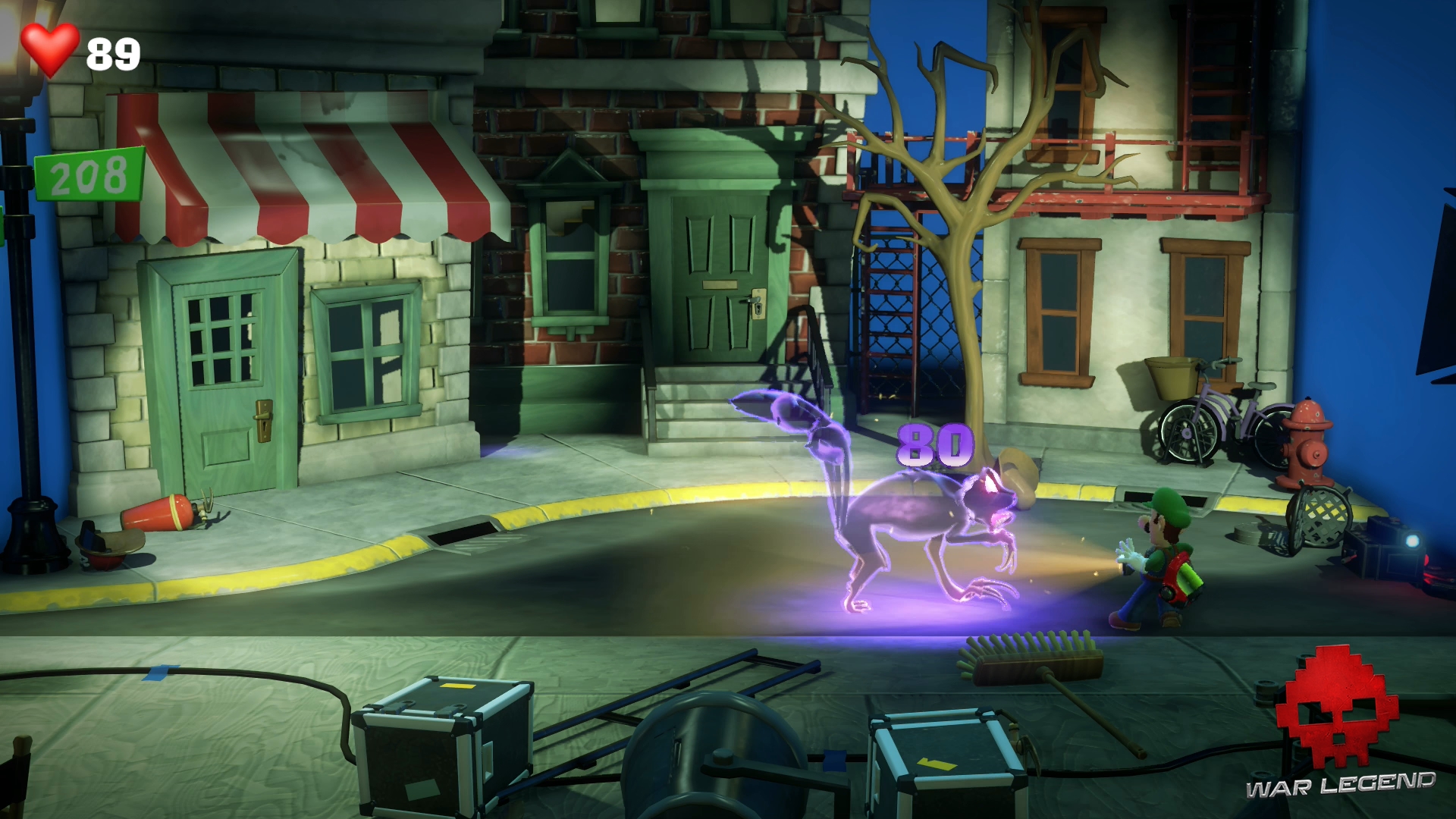Retournez à l’ascenseur pour retourner à l’étage 8… sauf qu’on vous gêne une fois de plus. Des particules Boo prennent possession d’une poubelle. Ventousez-le afin de le calmer un bon coup et utilisez le Révéloscope pour l’exorciser. Attention, ces particules agressives attaquent. Dépêchez-vous de les aspirer.