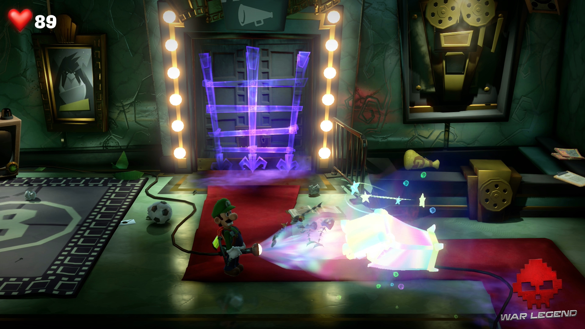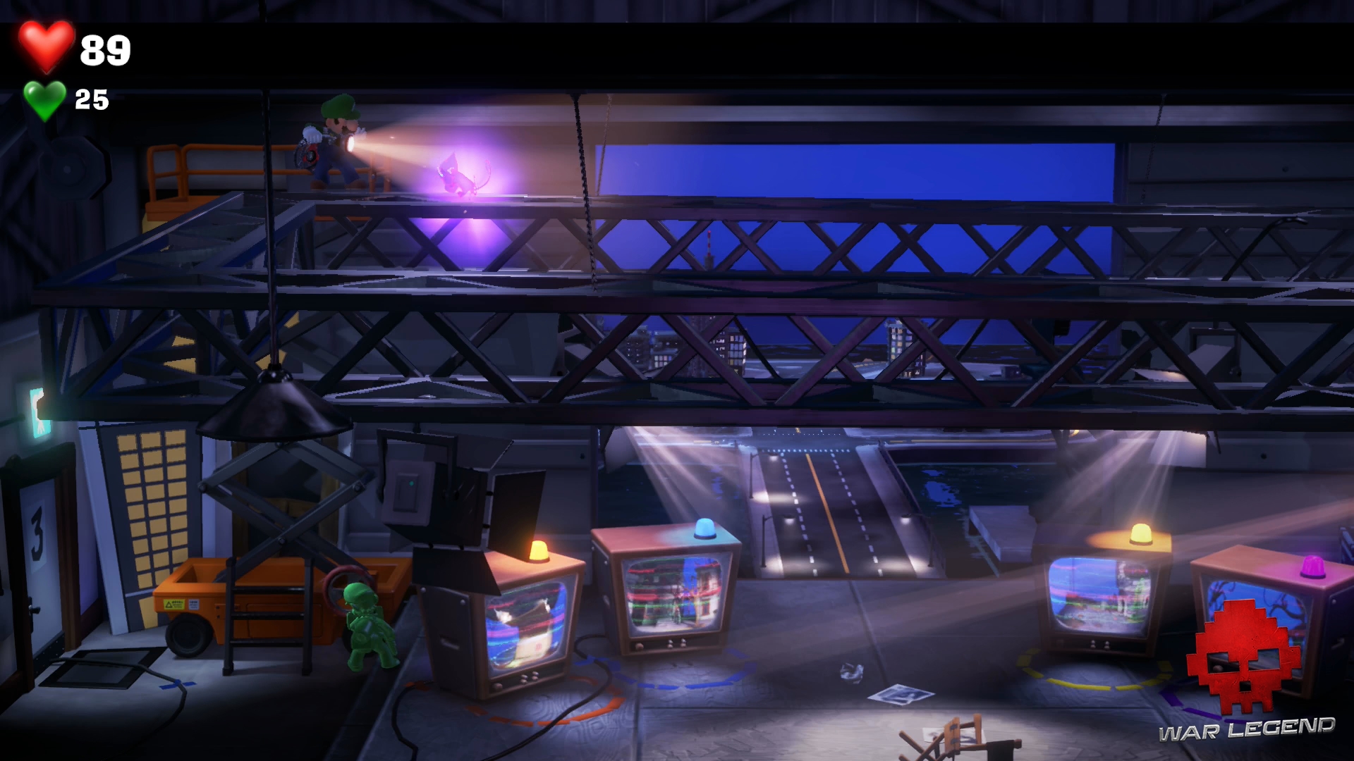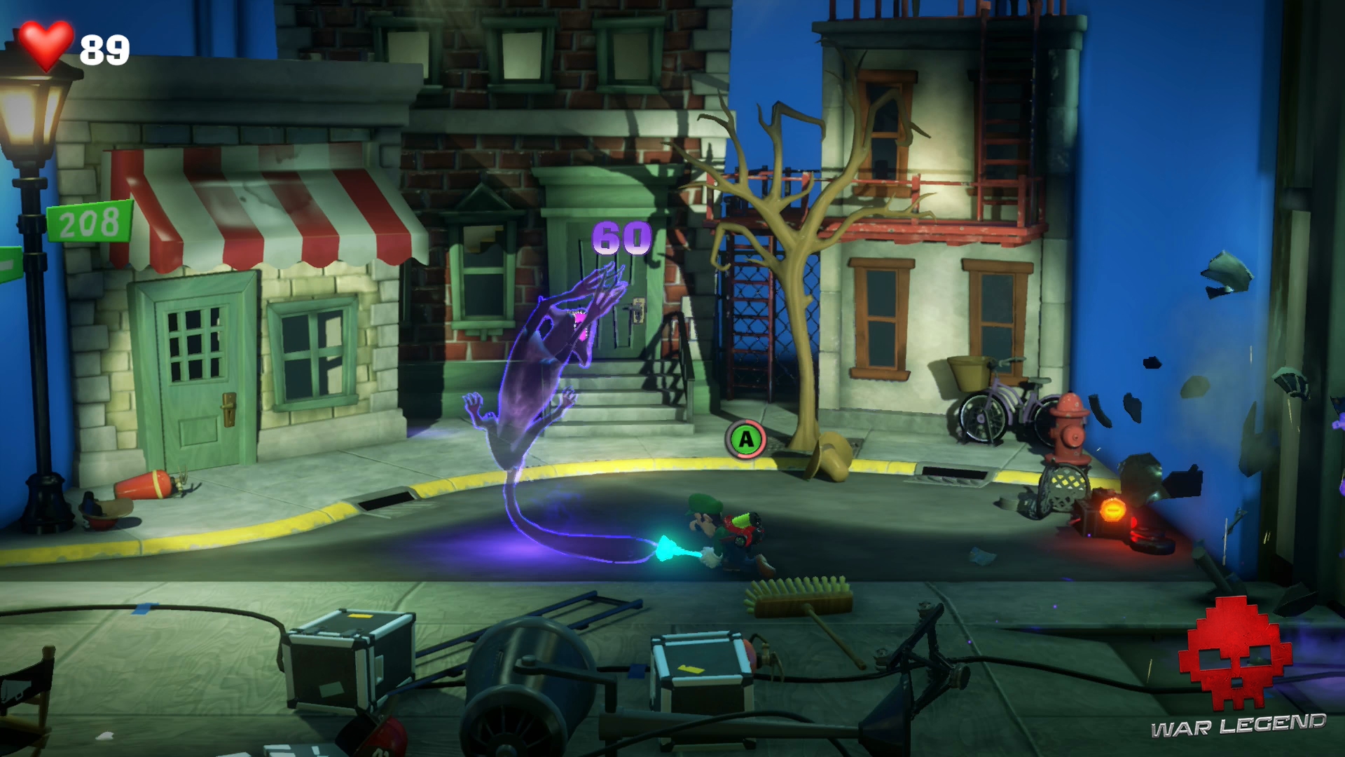 Retournez à l’ascenseur pour retourner à l’étage 8… sauf qu’on vous gêne une fois de plus. Des particules Boo prennent possession d’une poubelle. Ventousez-le afin de le calmer un bon coup et utilisez le Révéloscope pour l’exorciser. Attention, ces particules agressives attaquent. Dépêchez-vous de les aspirer.
