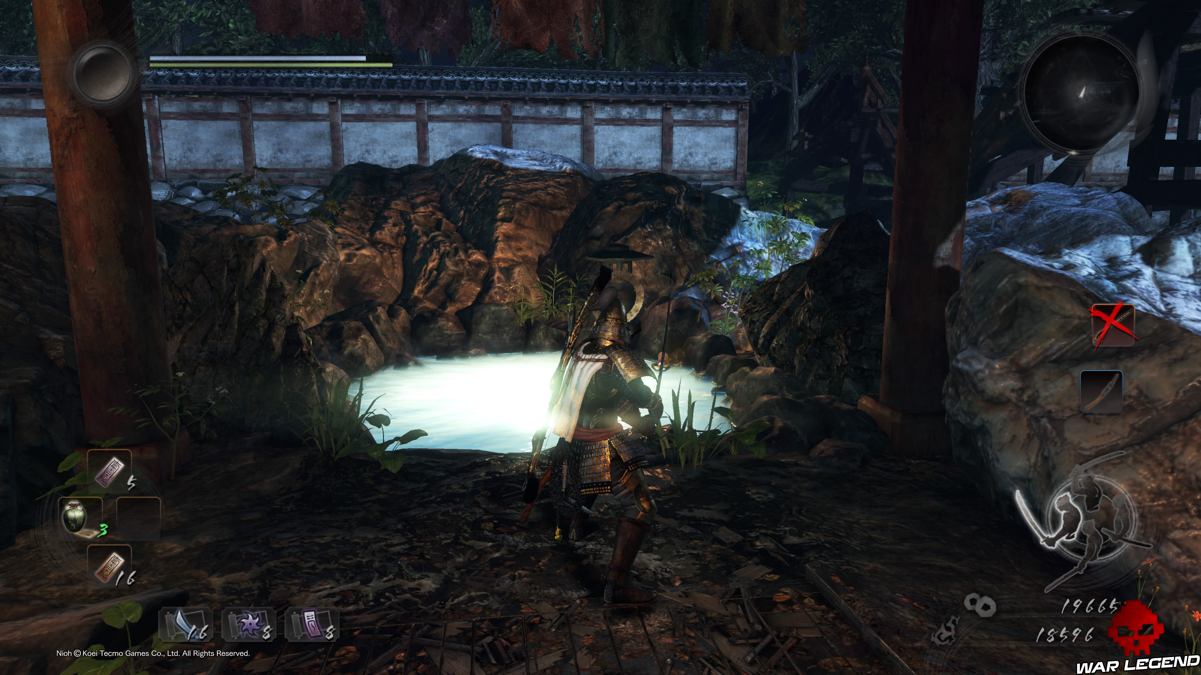Vous trouvez un Talisman de moment. Revenez sur vos pas et prenez à gauche. Vous voyez une brume de Yokai. Tuez l’archer derrière le mur de gauche et avancez. Un guerrier squelette apparaît et ne demande qu’à goûter de votre lame.