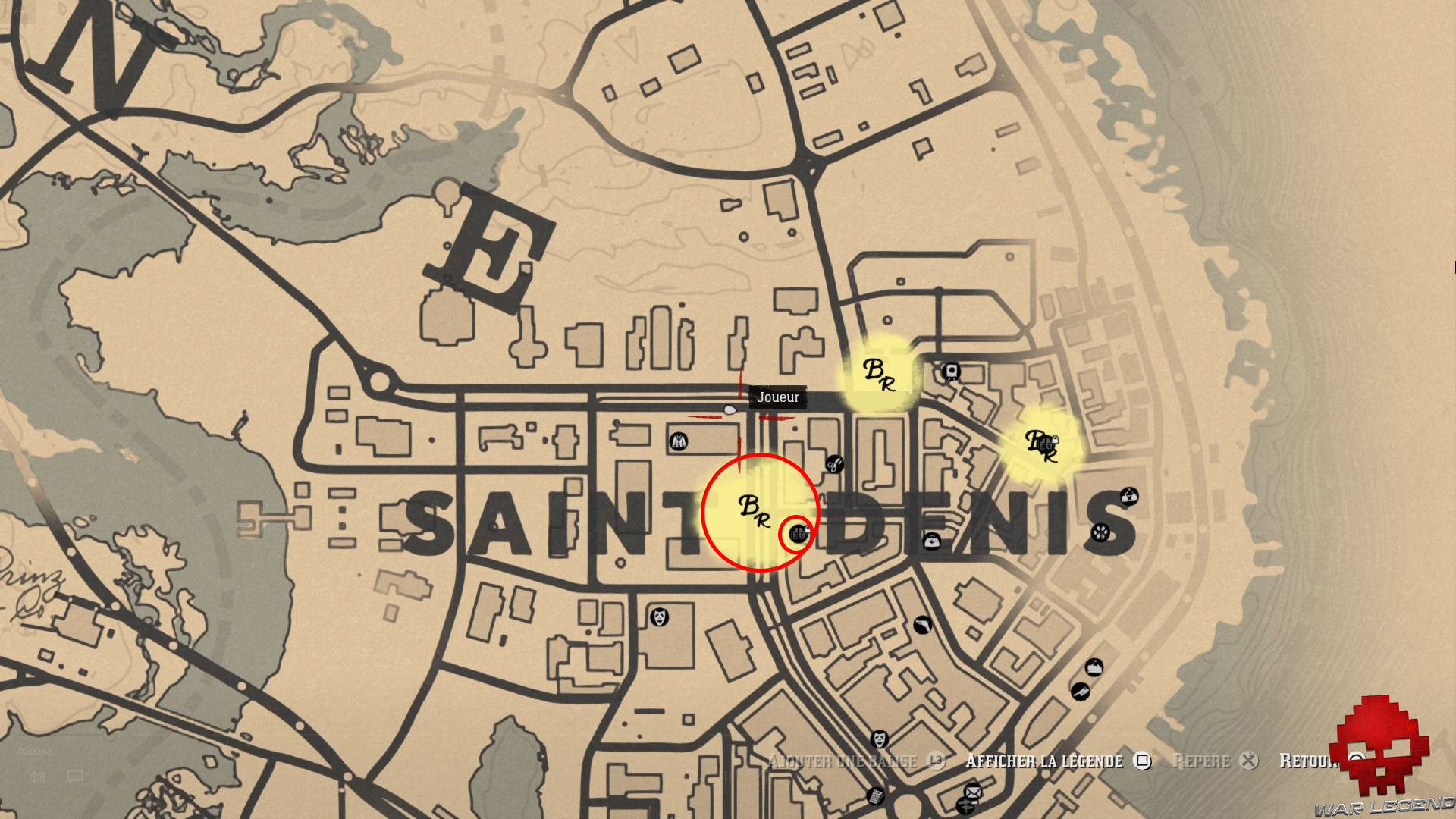 Sur les 3 endroits que l’on vous indique comme potentiels lieu d’information, seul celui le plus au sud doit vous intéresser. Entrez dans le saloon très bien fréquenté de Saint-Denis et allez parler au barman. Appelez-le 2 fois pour qu’il vous remarque.