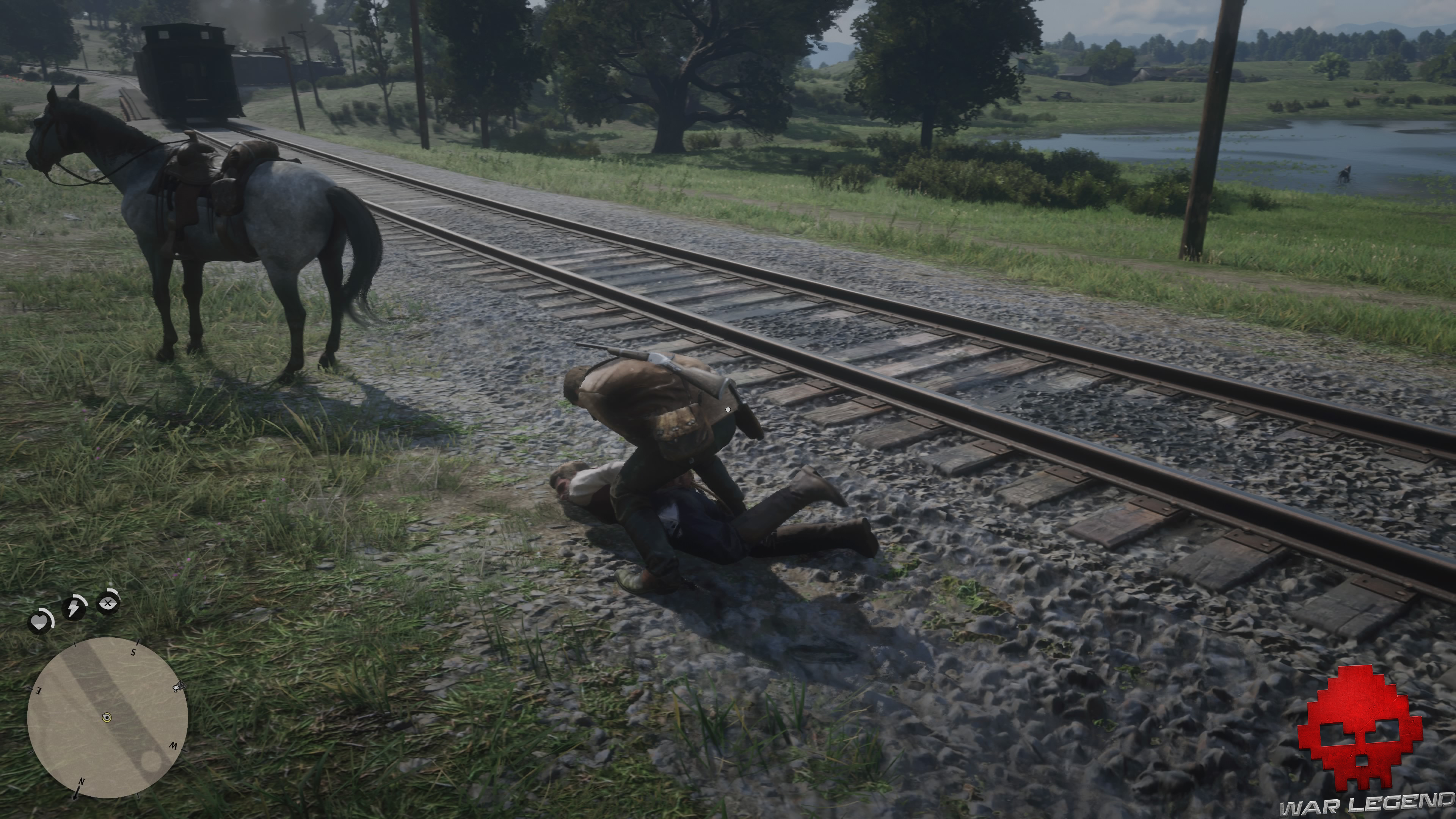 Ce mauvais payeur est à l’ouest du camp de la bande, dans la ferme Guthrie. Vous devez parler à son voisin assis sur un tronc d’arbre derrière la ferme pour l’identifier. Au moment où il est désigné, Chick se fait la malle. Mettez-vous en selle et attrapez-le au lasso.