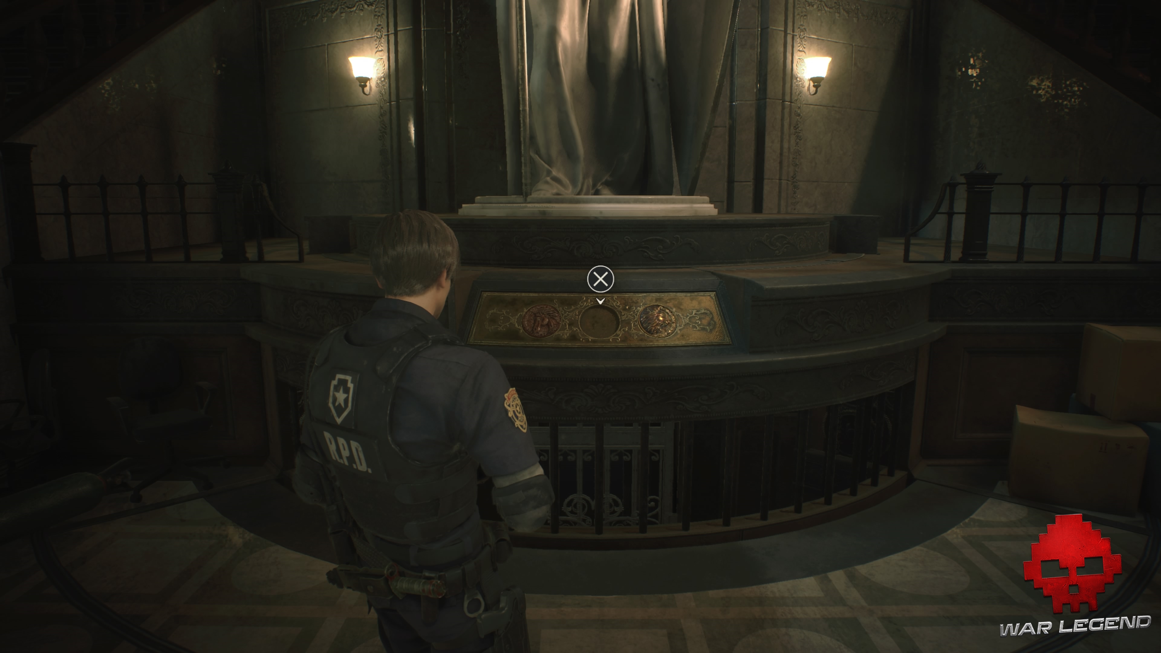 Utilisez les trois médaillons sur la grande statue au nord du Hall principal.