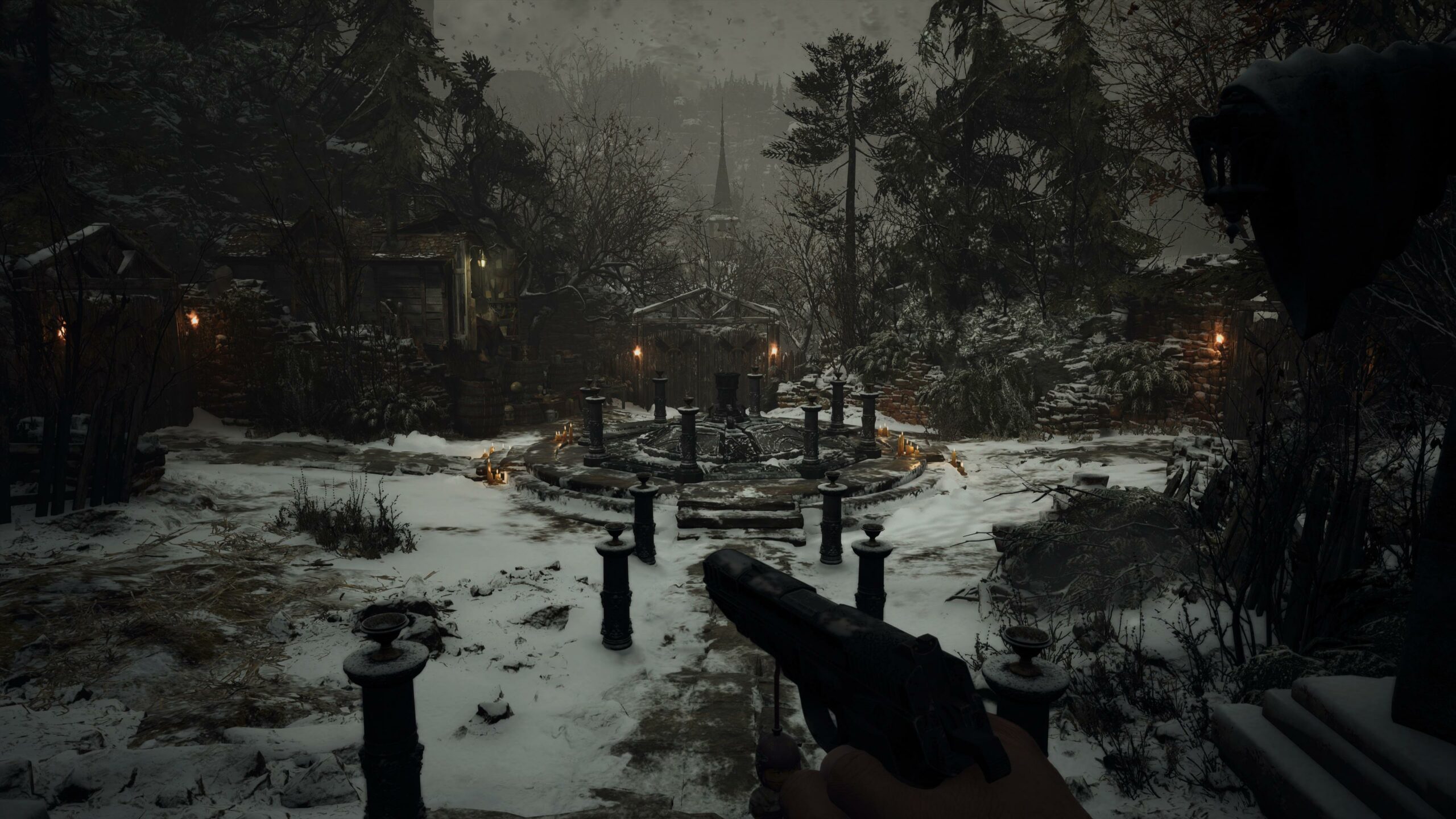 Repassez le portail pour sortir mais n’allez pas trop vite : vous remarquez que 3 silhouettes menaçantes sont perchées sur les toits à proximité.