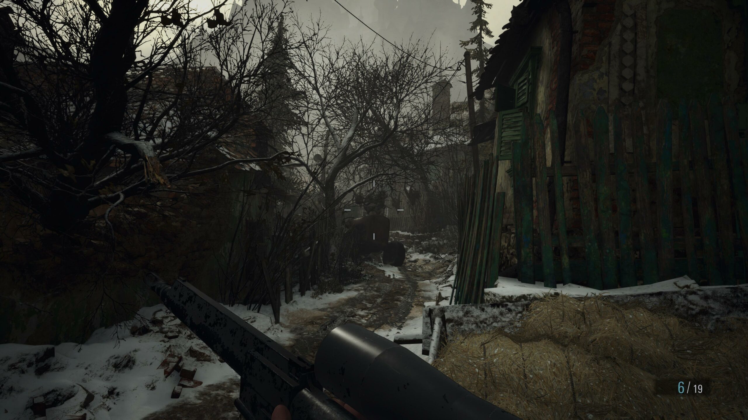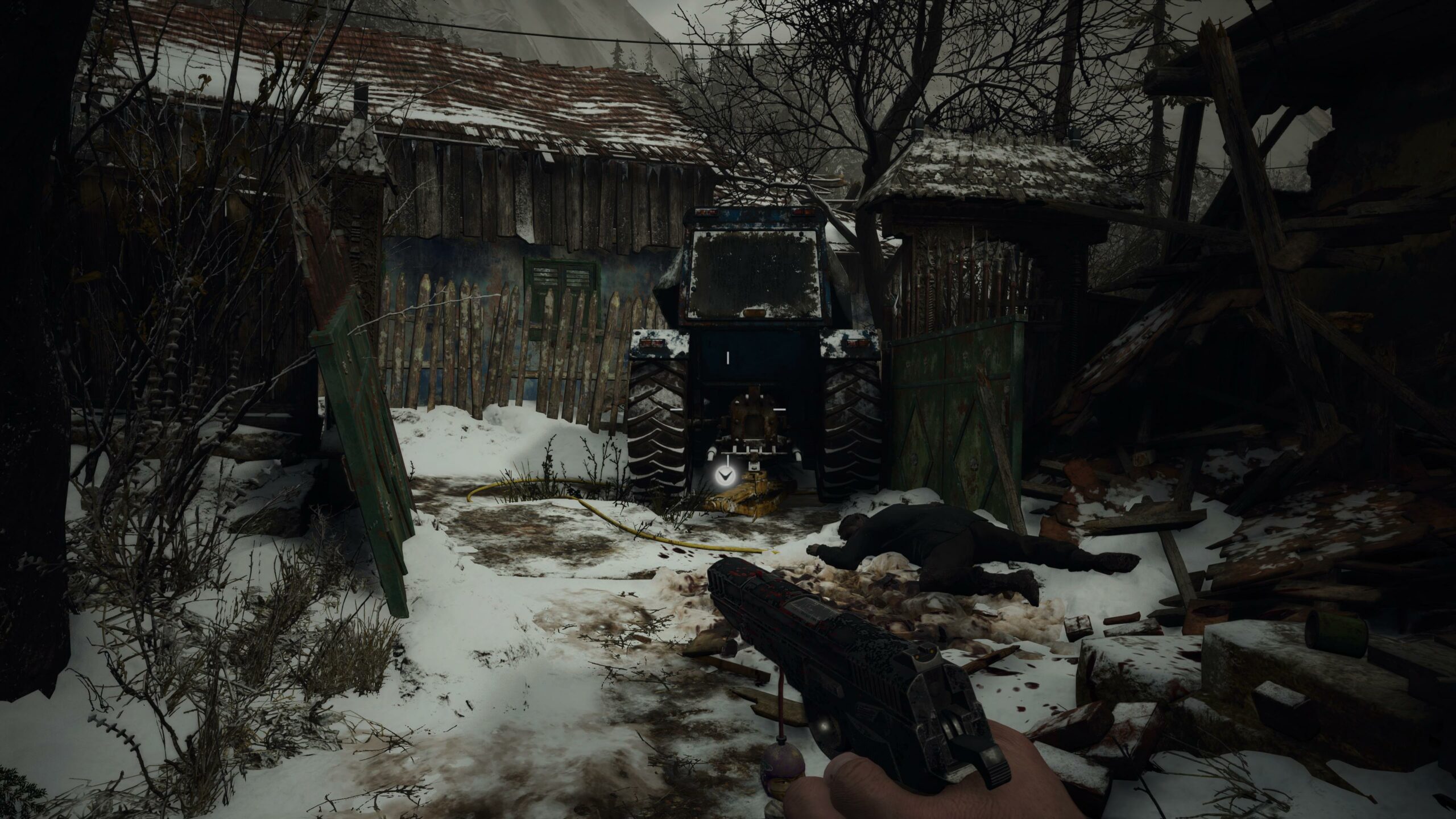 Déverrouillez ensuite la porte ramenant à la cour de devant et prenez la porte à gauche où vous pouvez virer une barricade. Tuez le lycan juste à droite à la sortie et prenez à gauche du tracteur en travers de la route.