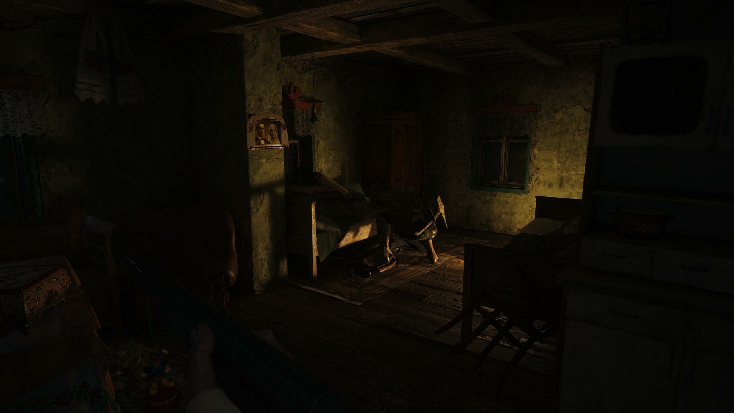 À gauche dans l’armoire se trouvent des munitions pour pistolet. En face, le tiroir peut être crocheté pour obtenir des munitions de fusil. Déverrouillez la porte au bout de la maison et fouillez le cabinet à gauche pour y trouver de la ferraille.