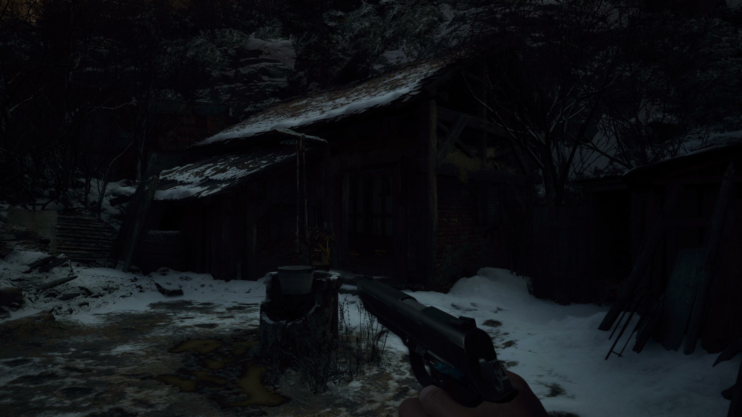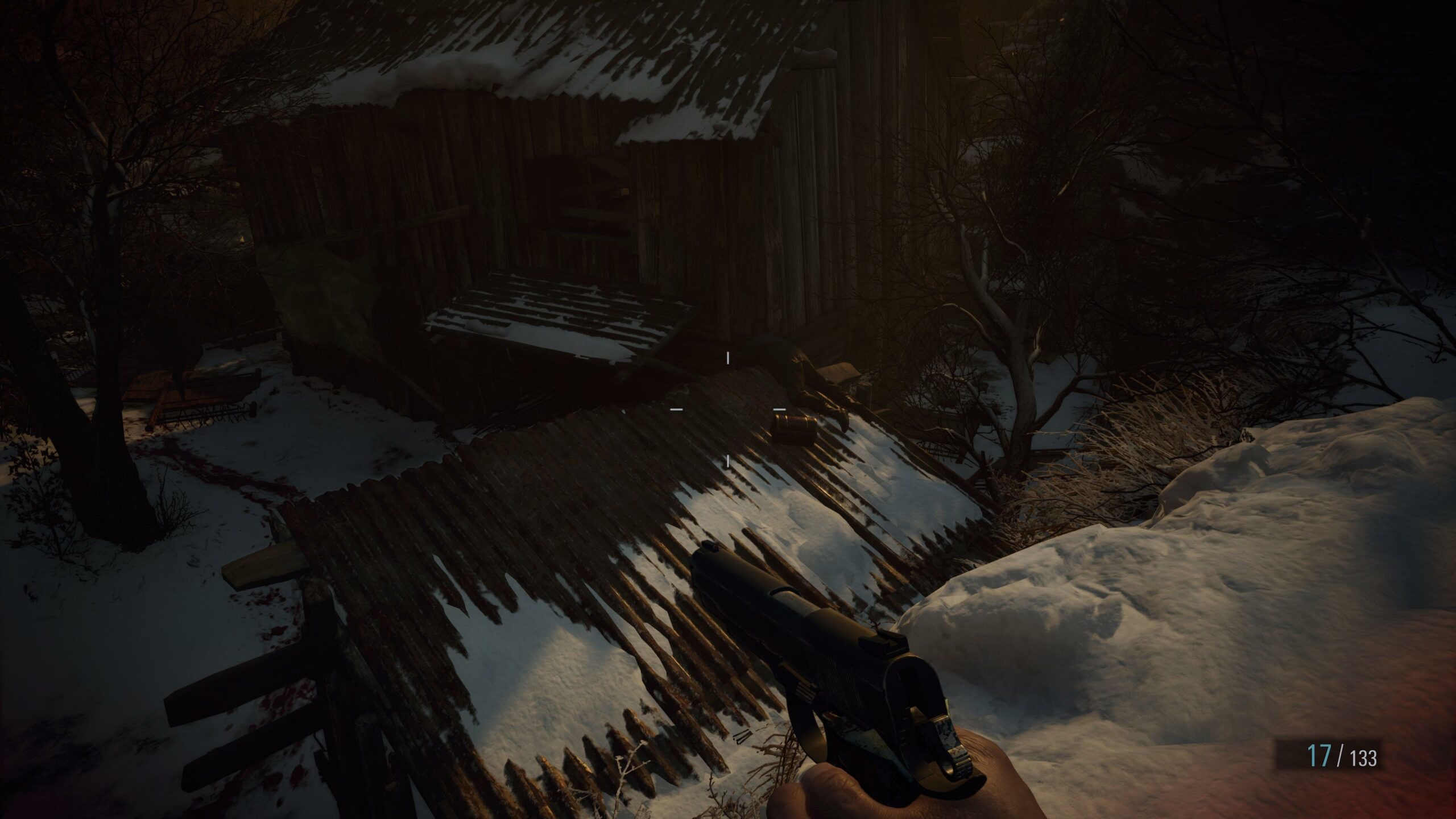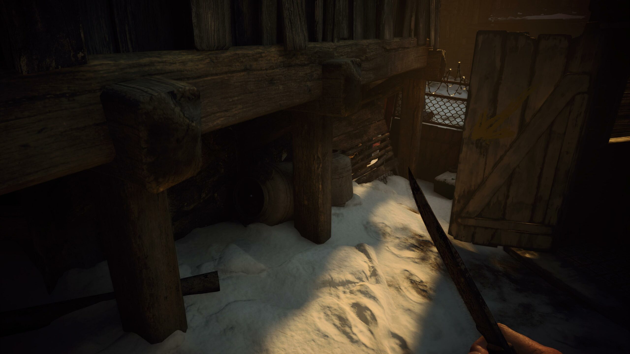 Entrez dans la petite grange sur la gauche. Vous y trouverez un cochon. Déverrouillez la porte pour accéder à la cours où se trouve 1 puits contenant un crochet. Dans la grange à droite, regardez à l’étage pour trouver 1 cage sur laquelle tirer et obtenir des cartouches de fusil.