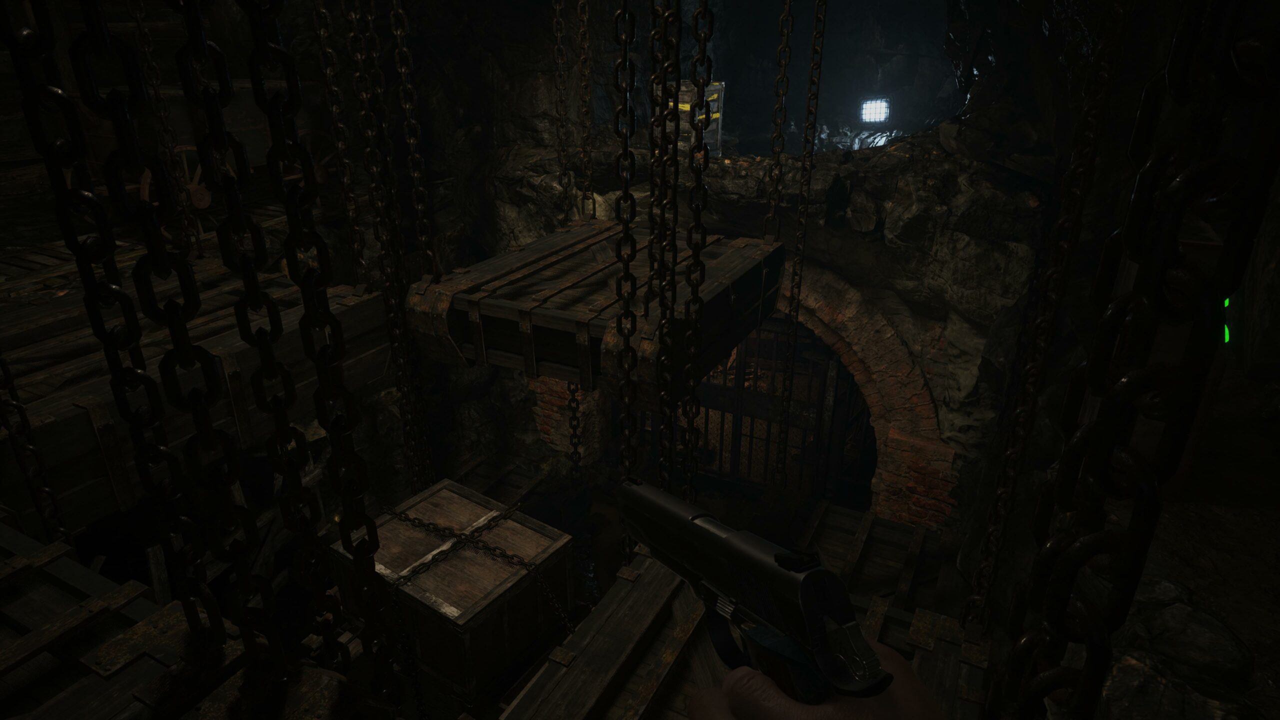 Passez le portail et montez les marches à gauche. Avancez jusqu’au pont et descendez les marches à droite, où vous pourrez descendre un pont grâce à la manivelle.