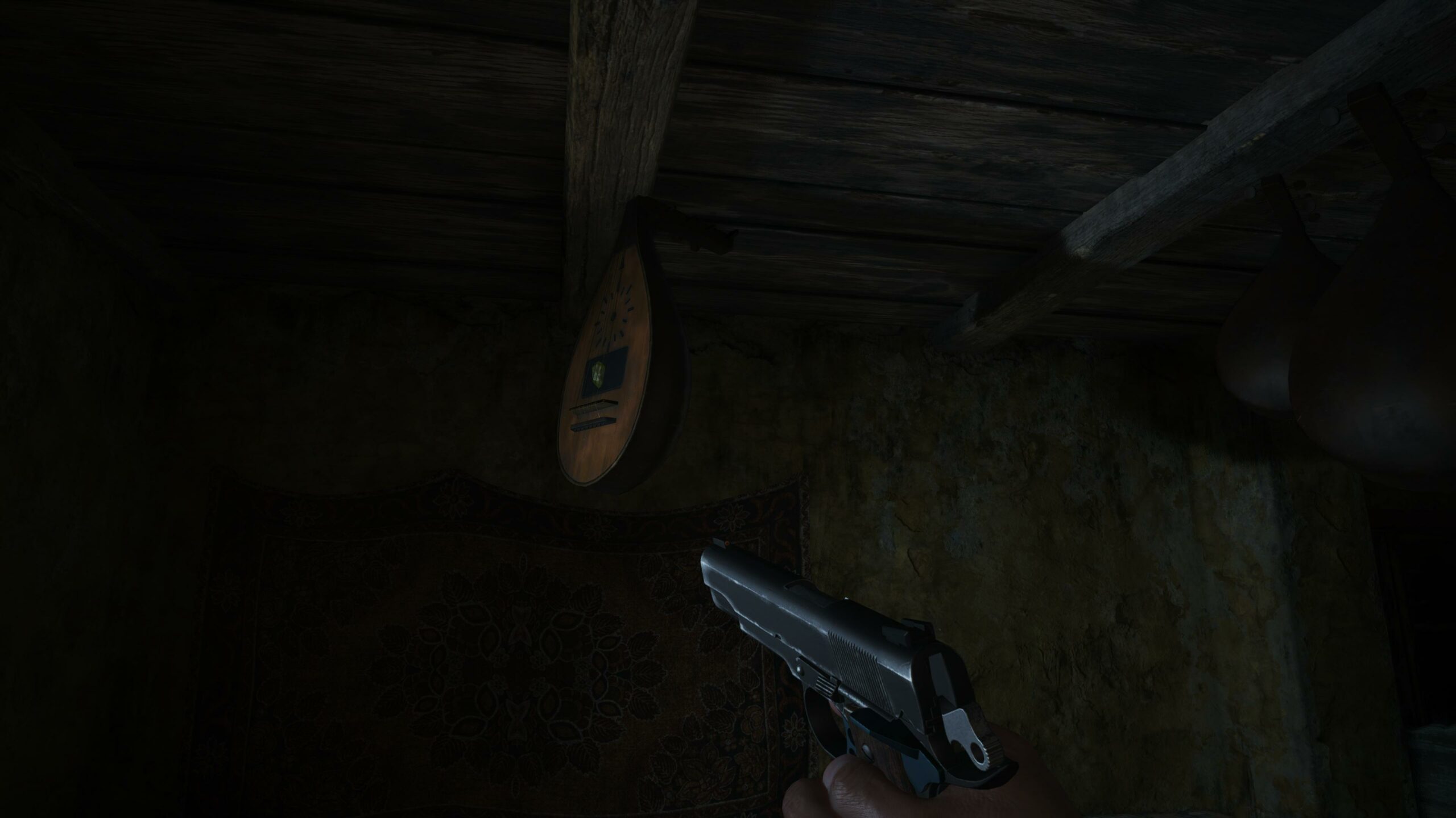 Vous obtenez des munitions pout pistolet et des poulets. Le cabinet est déjà ouvert mais vous remarquez qu’une flèche jaune y est peinte. Elle désigne l’un des récipients calé derrière une poutre, qui contient un quartz jaune.