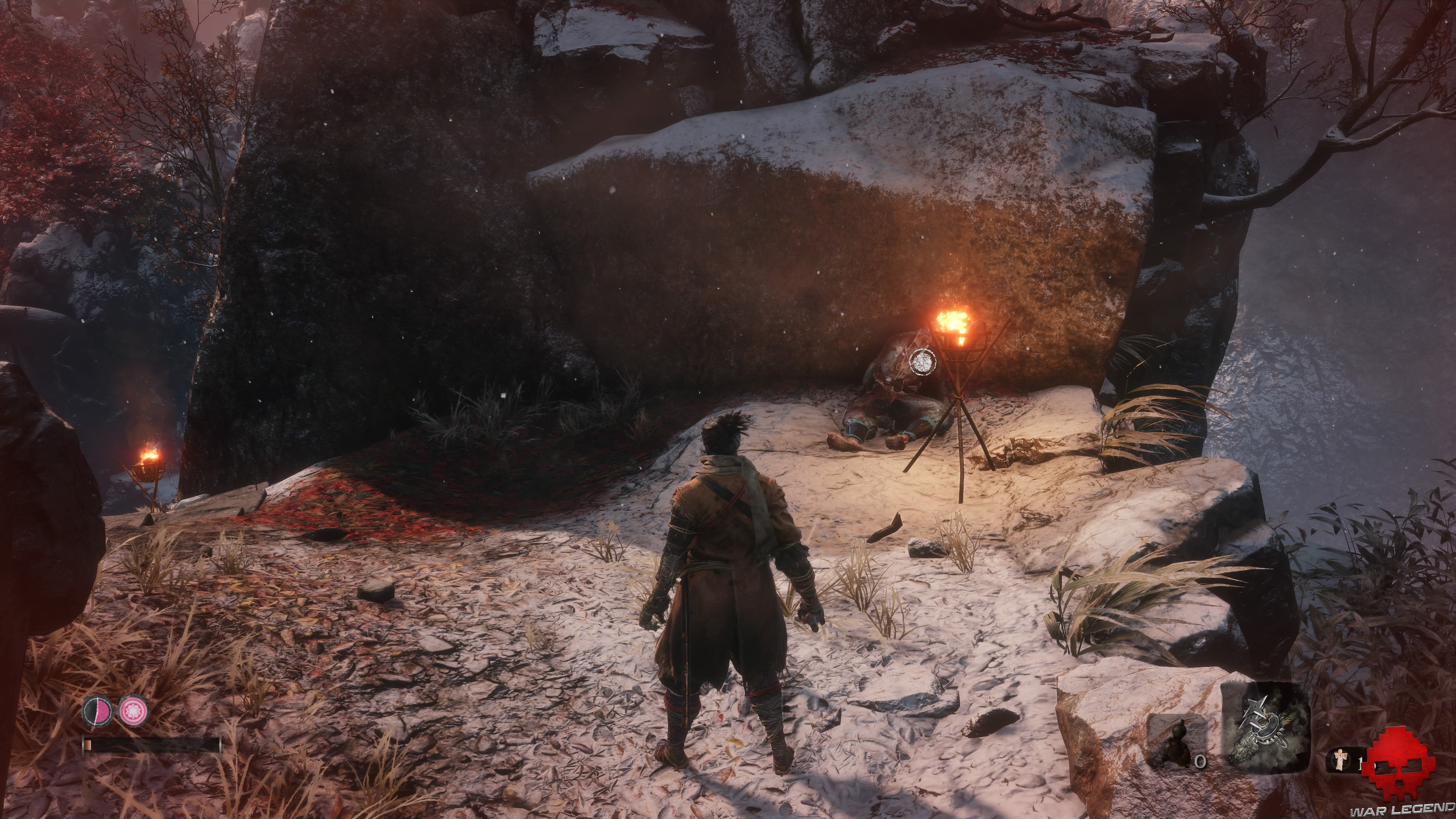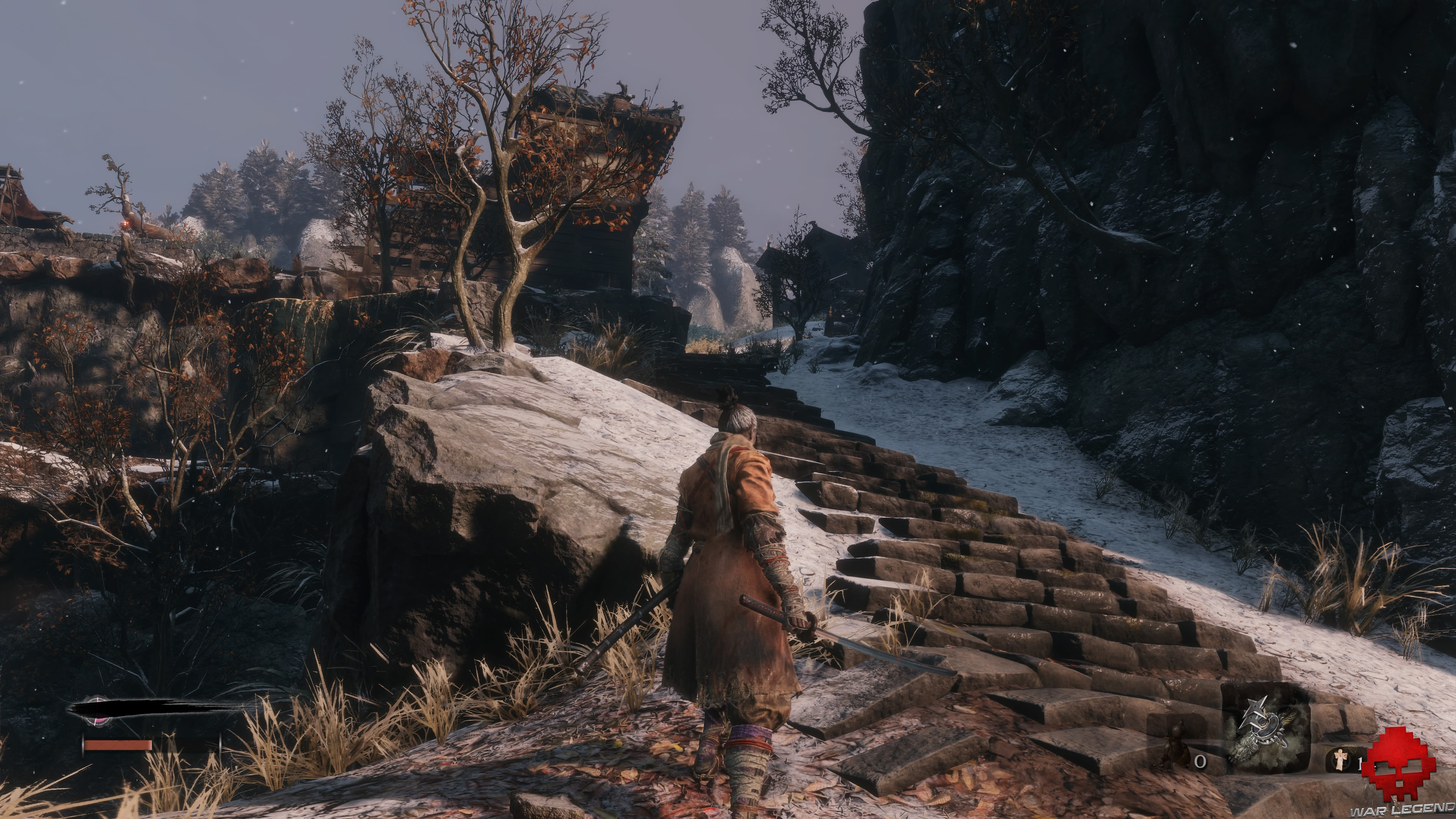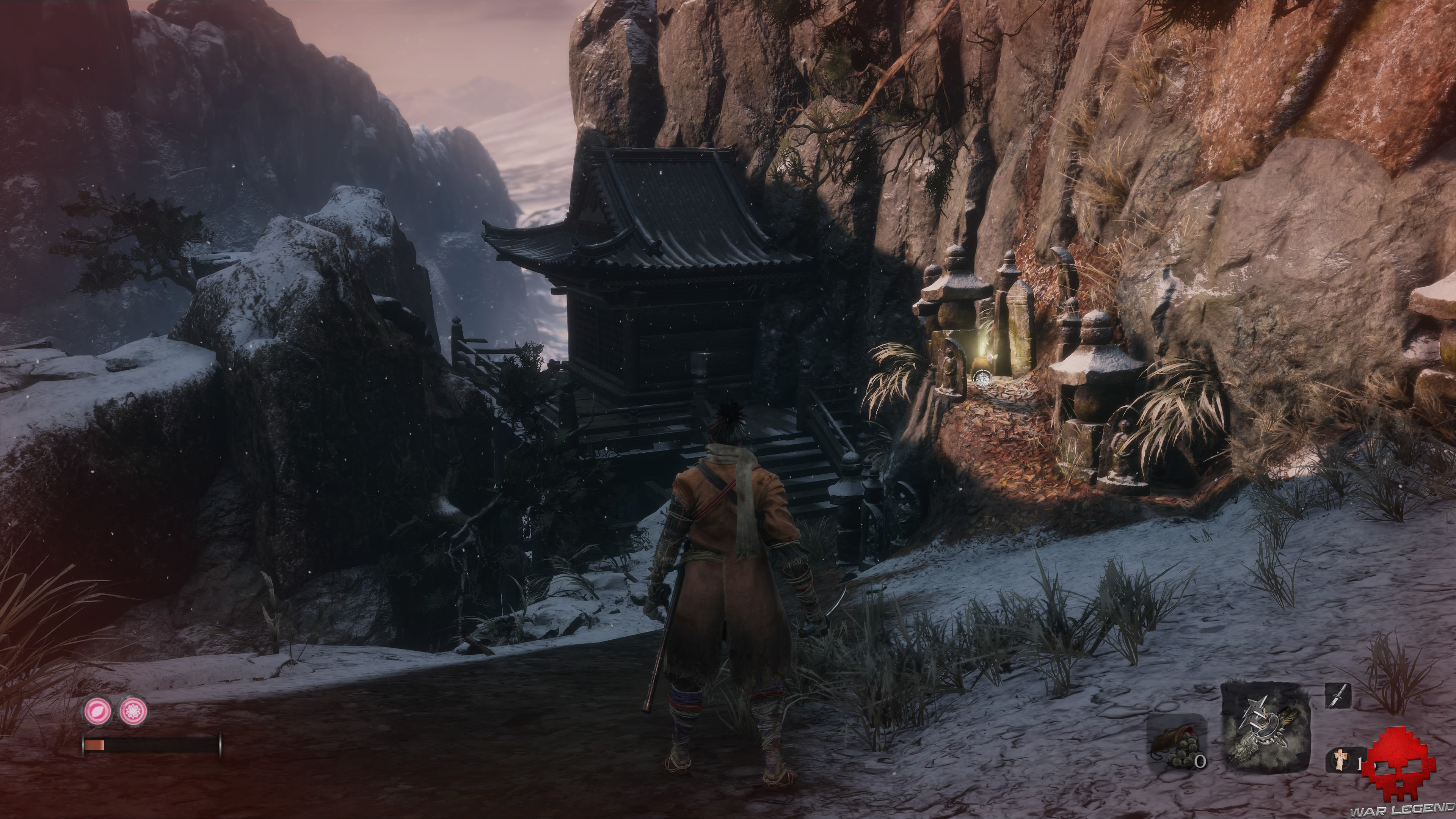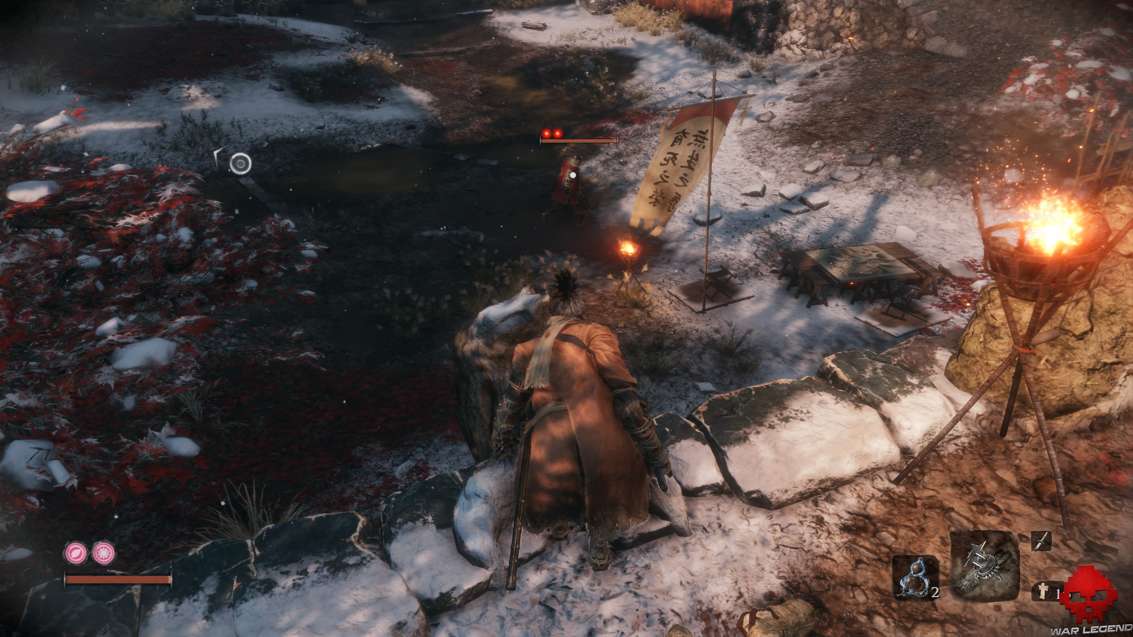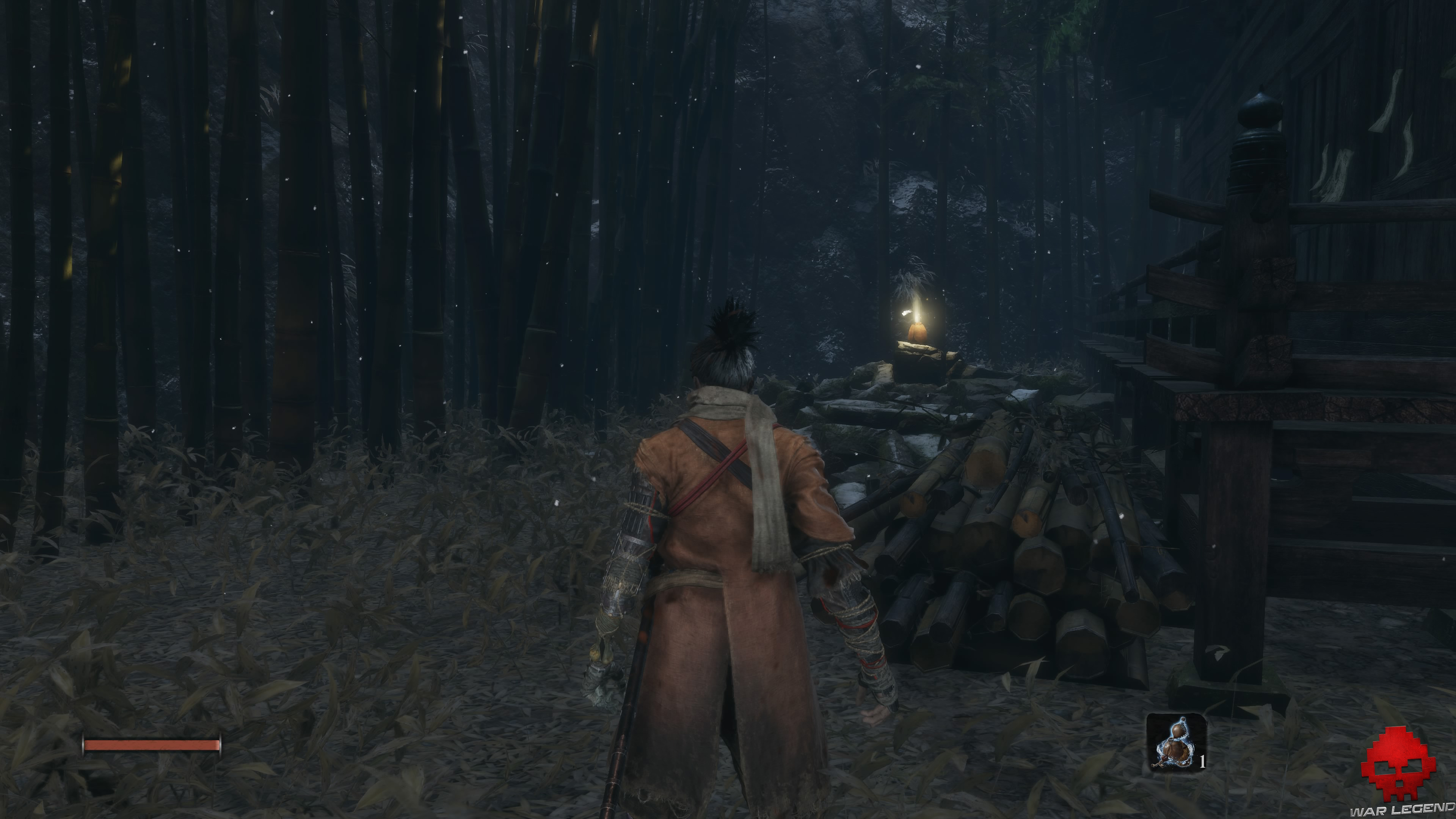 Contournez-le pour gagner un coup mortel gratuit contre-lui puis finissez-le pour obtenir une Perle de chapelet qui vous permettra, lorsque vous en aurez 4, d’améliorer votre vitalité ainsi que votre posture. Attention contre cet adversaire, s’il se met à générer une aura grisâtre, c’est qu’il va recharger sa posture – lancez-lui un shuriken ou attaquez-le.