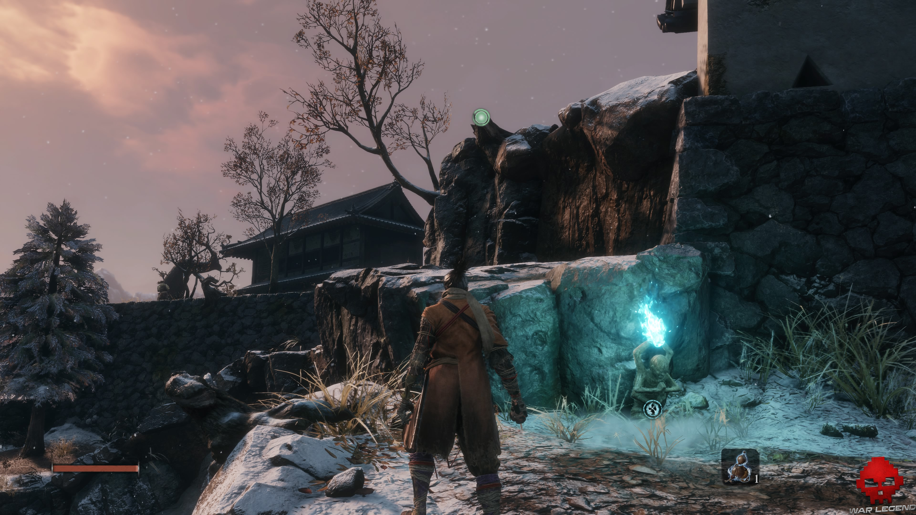 Une fois que vous l’avez activée, retournez-vous pour aller assassiner un nouveau poulet. Descendez ensuite au niveau des lueurs rouges, approchez-vous et touchez les fragments. Retournez-vous pour aller discuter avec le marchand Anayama. Si vous acceptez de la payer, il vous informera sur la nuit que vous avez oublié. Ajoutez 100 sen et il vous parlera d’un outil de prothèse ninja qu’il a vu au Domaine Hirata. Il utilisera ensuite ces 150 sen pour aller récupérer des marchandises pour vous, mais plus tard.