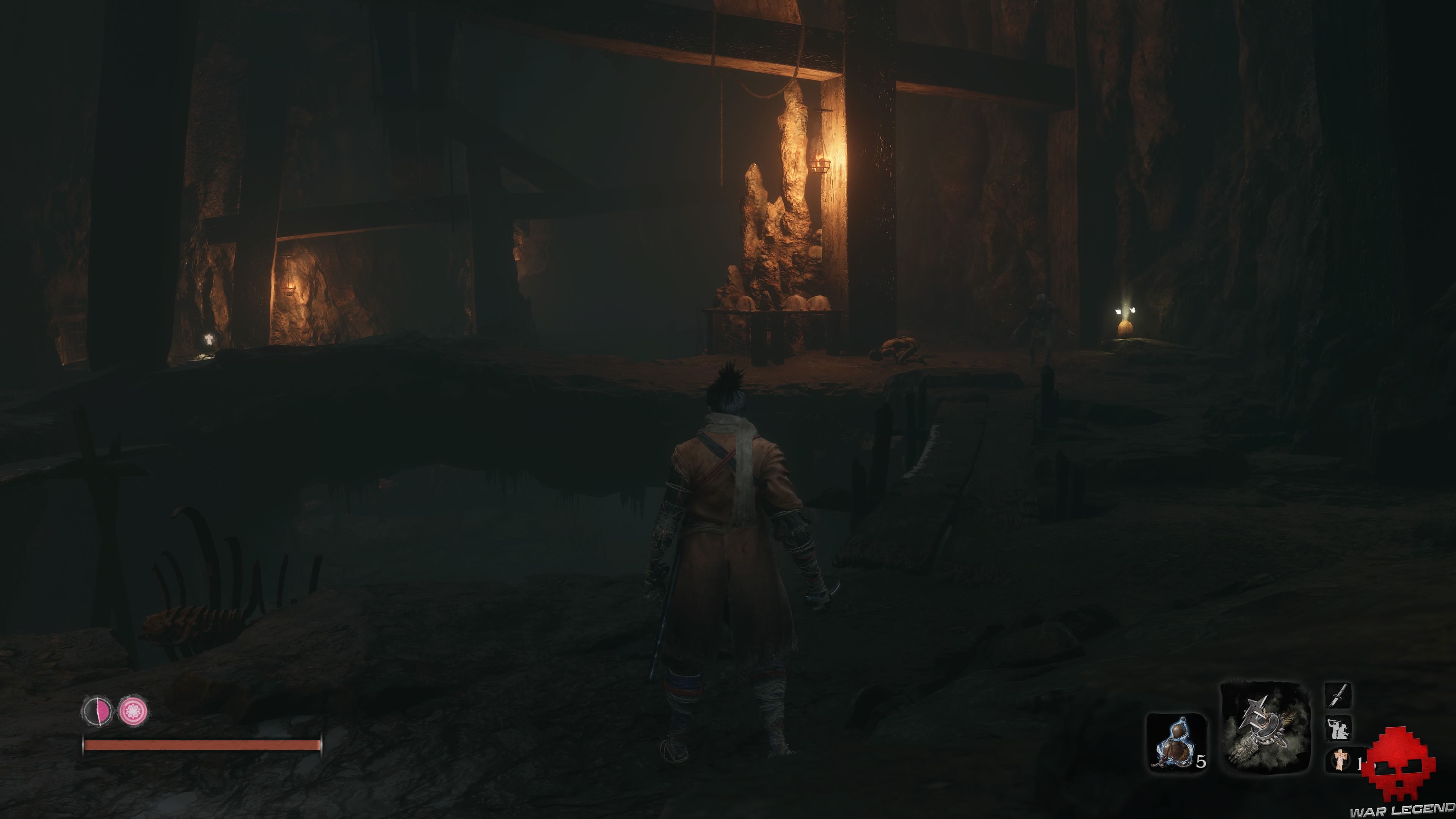 Zigouillez les 4 insectes au mur puis récupérez la Note en lambeaux du prisonnier. Ressortez en éliminant les insectes qui tombent puis prenez à gauche pour traverser un précipice. Derrière un pilier se cache un mort-vivant.