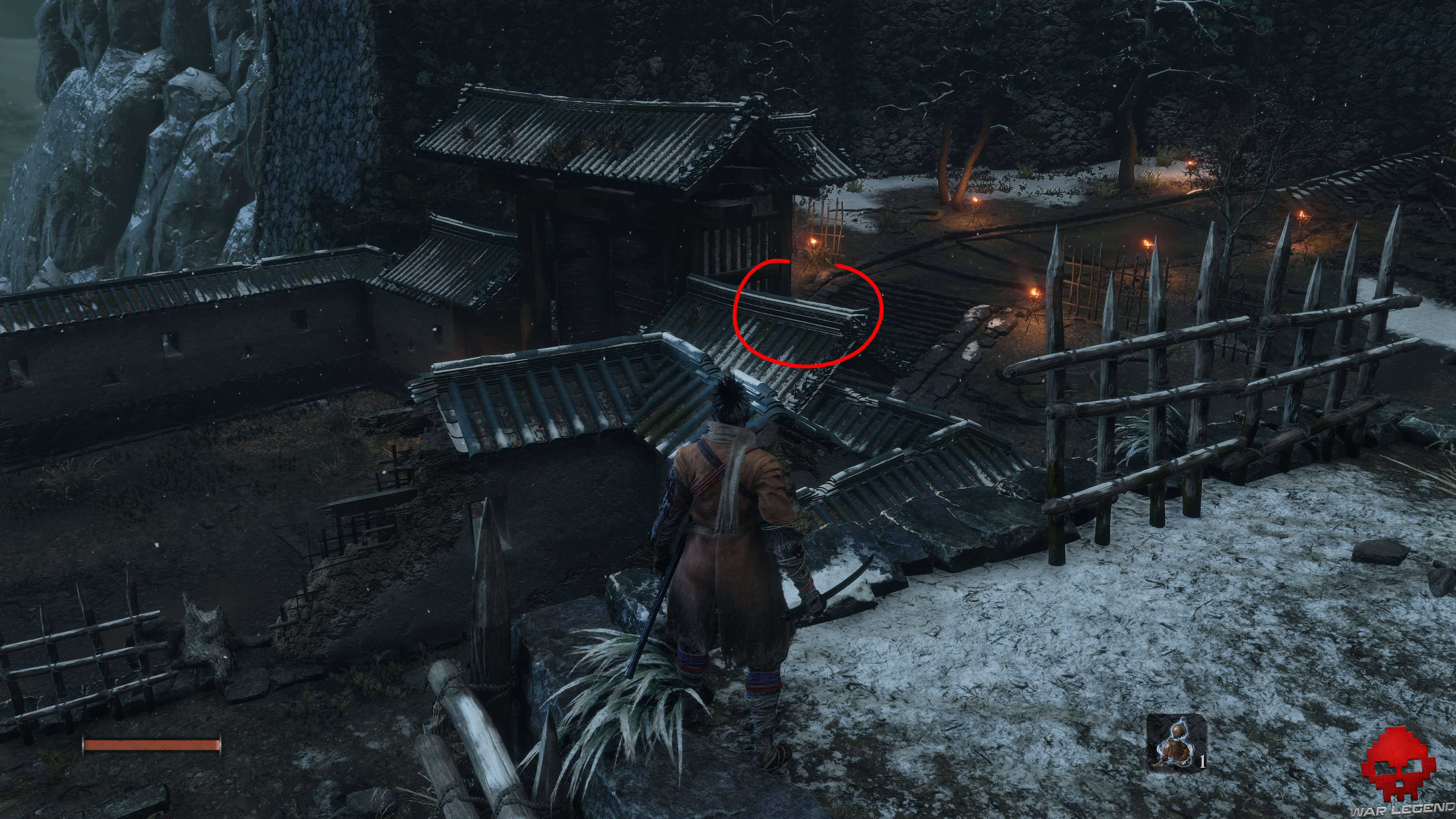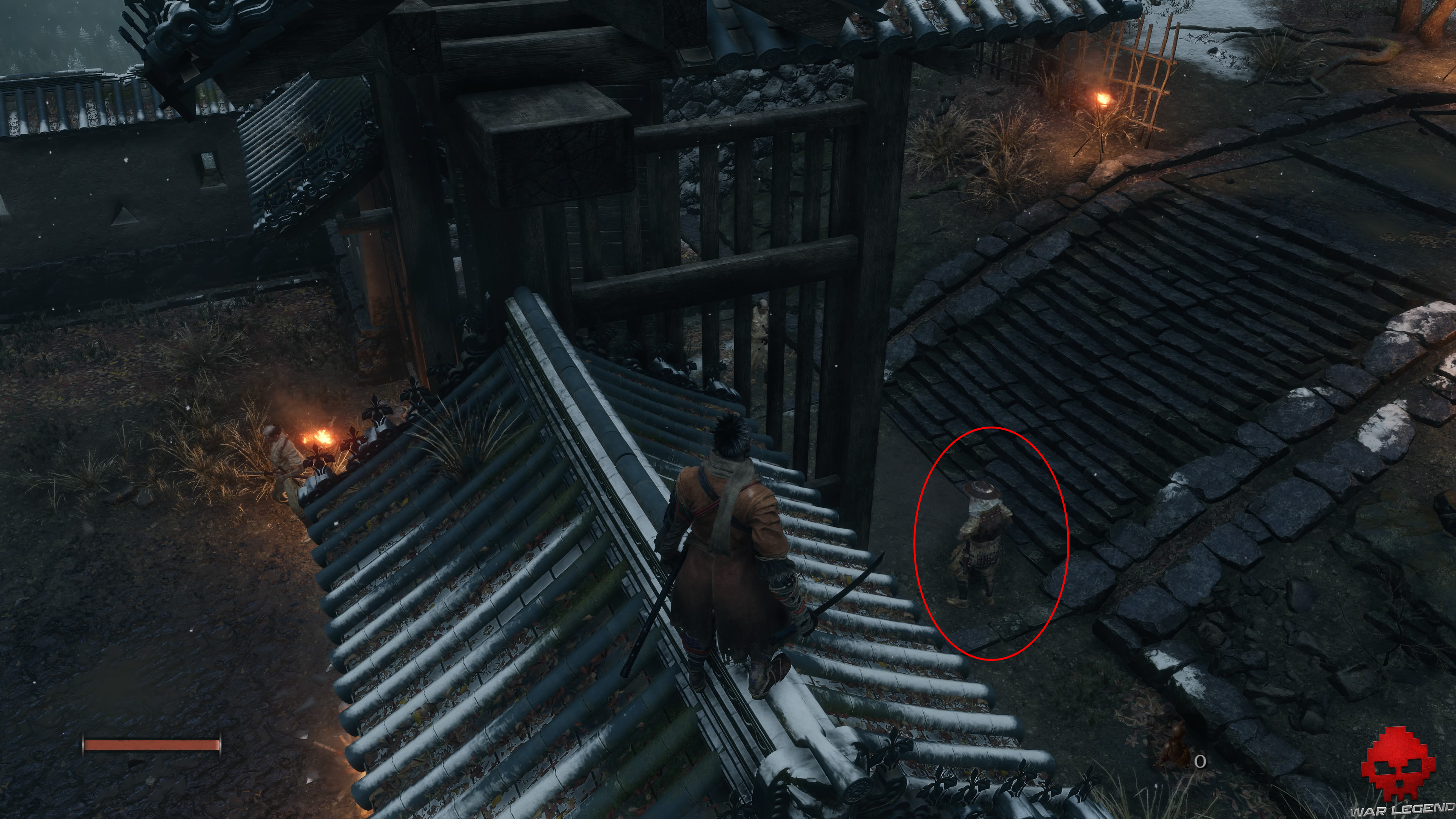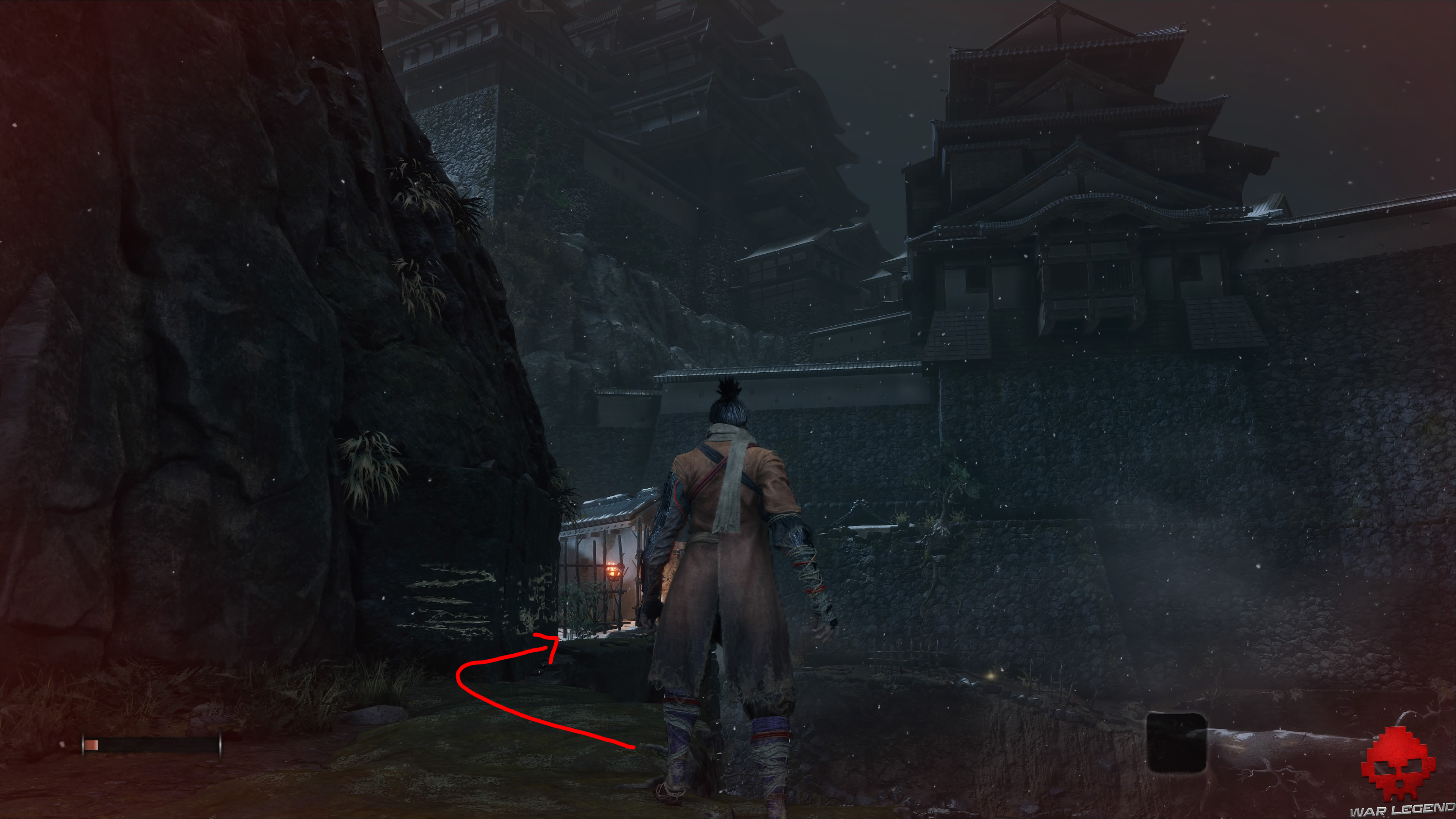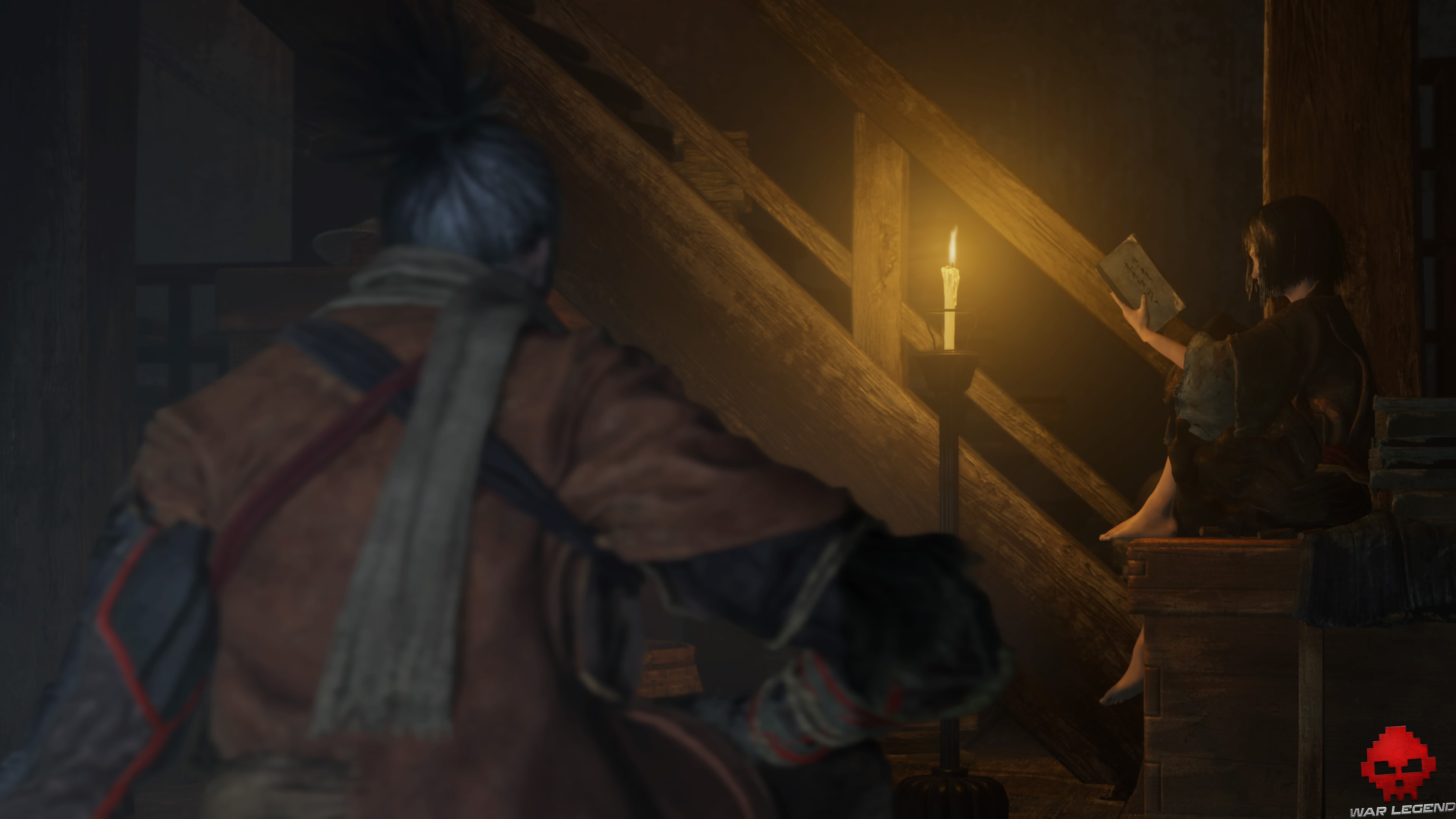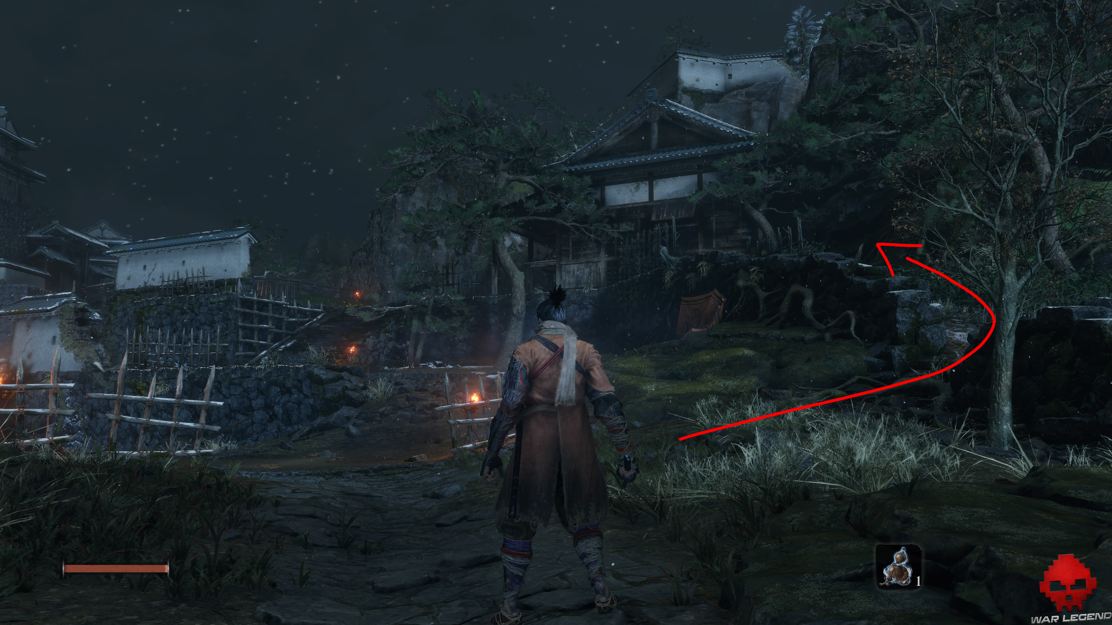 Avancez dans le couloir et affrontez le Seigneur Genichiro dans un champ. Bon, affronter est un bien grand mot : vous ne pouvez pas le battre, laissez-le vous découper (juste un bout, rassurez-vous).