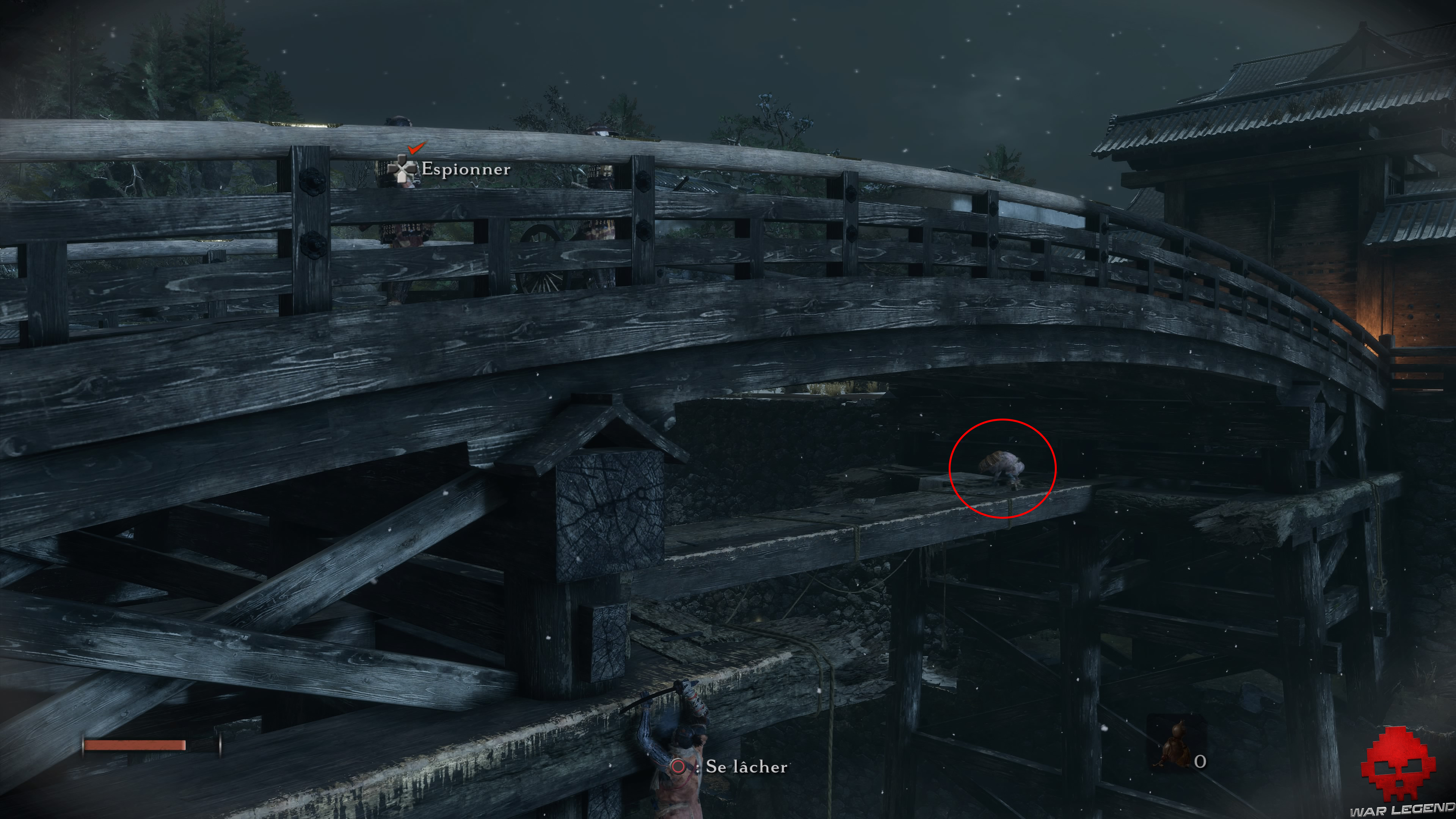 Profitez-en pour écouter la conversation des gardes au-dessus de vous au passage. Faites attention, un petit être chelou se cache sous le pont et vous devrez le tuer – contentez-vous d’enchaîner les attaques sur lui.