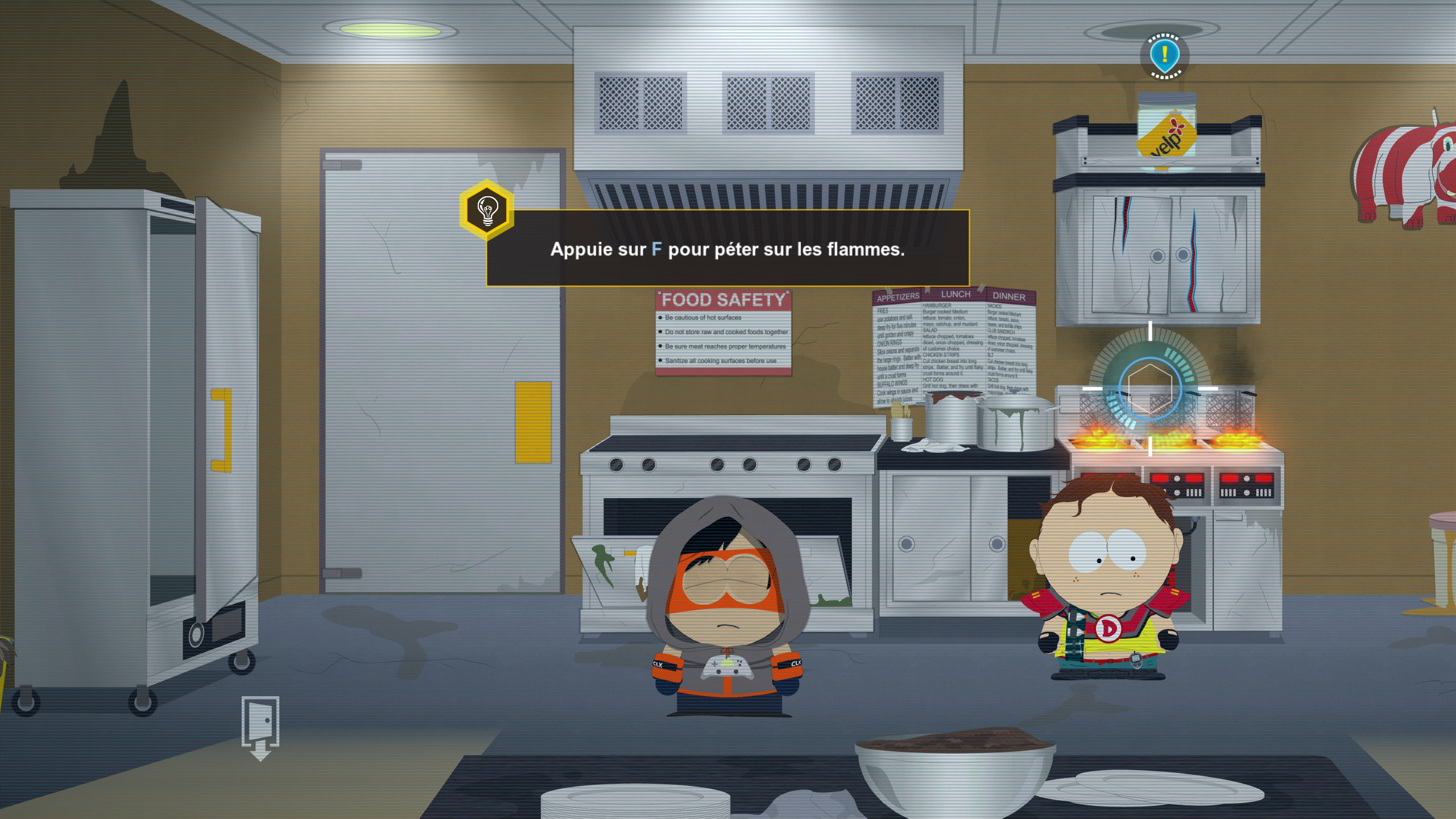 Une fois au bout, Classi s’enfuit. Suivez-la dans la ruelle. Un mafieux du restaurant italien d’à côté vous empêche de passer et se prend l’enseigne sur la figure. Capitaine Diabète tente alors de le déplacer, mais son manque d’insuline risque de le tuer. Morgan Freeman vient à votre rescousse et vous rappelle que certains pets sont si puissants qu’ils peuvent altérer l’espace-temps. Vous voilà en possession de votre premier pouvoir de pet : le Pet temporel de bug. Utilisez-le et remontez le temps avant l’inévitable, puis rentrez dans le restaurant.