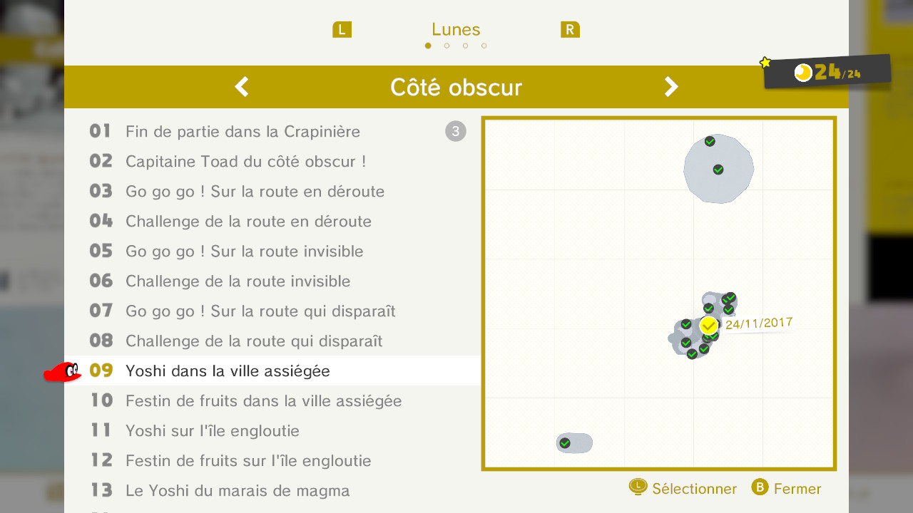 La lune sera générée quand vous aurez rempli l’estomac de Yoshi une deuxième fois. Checkez bien les coins pour trouver tous les fruits.