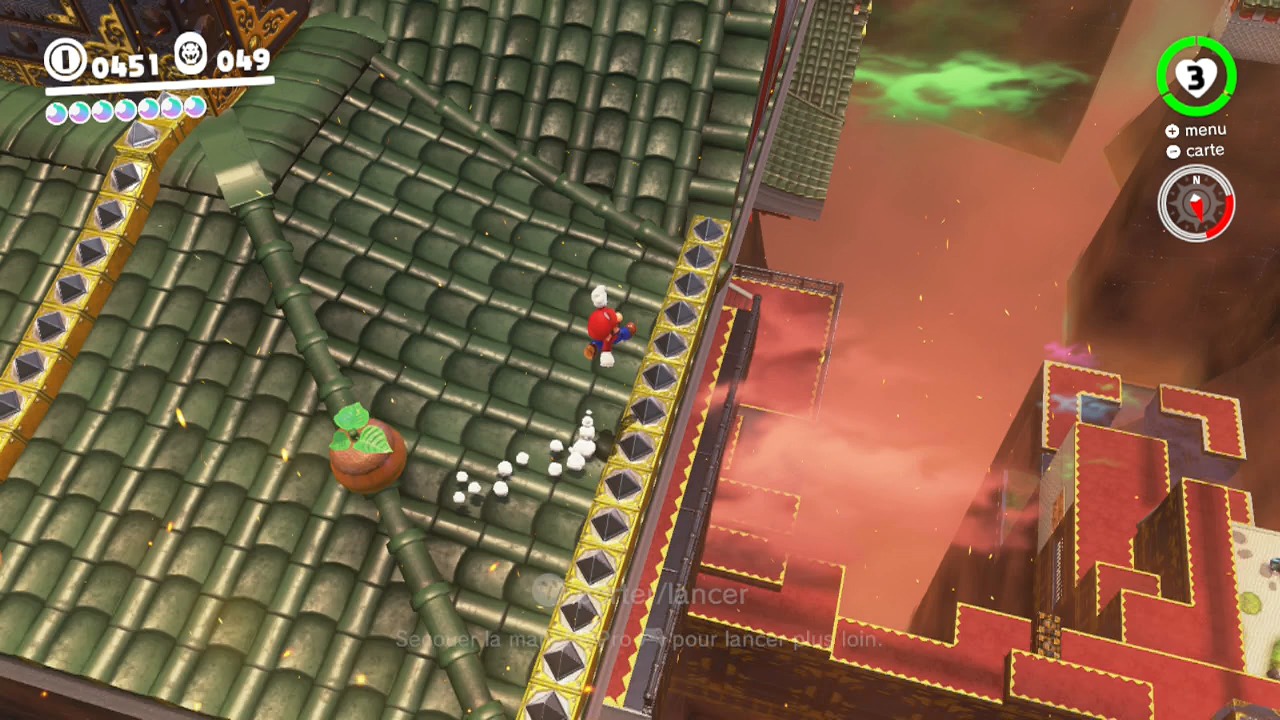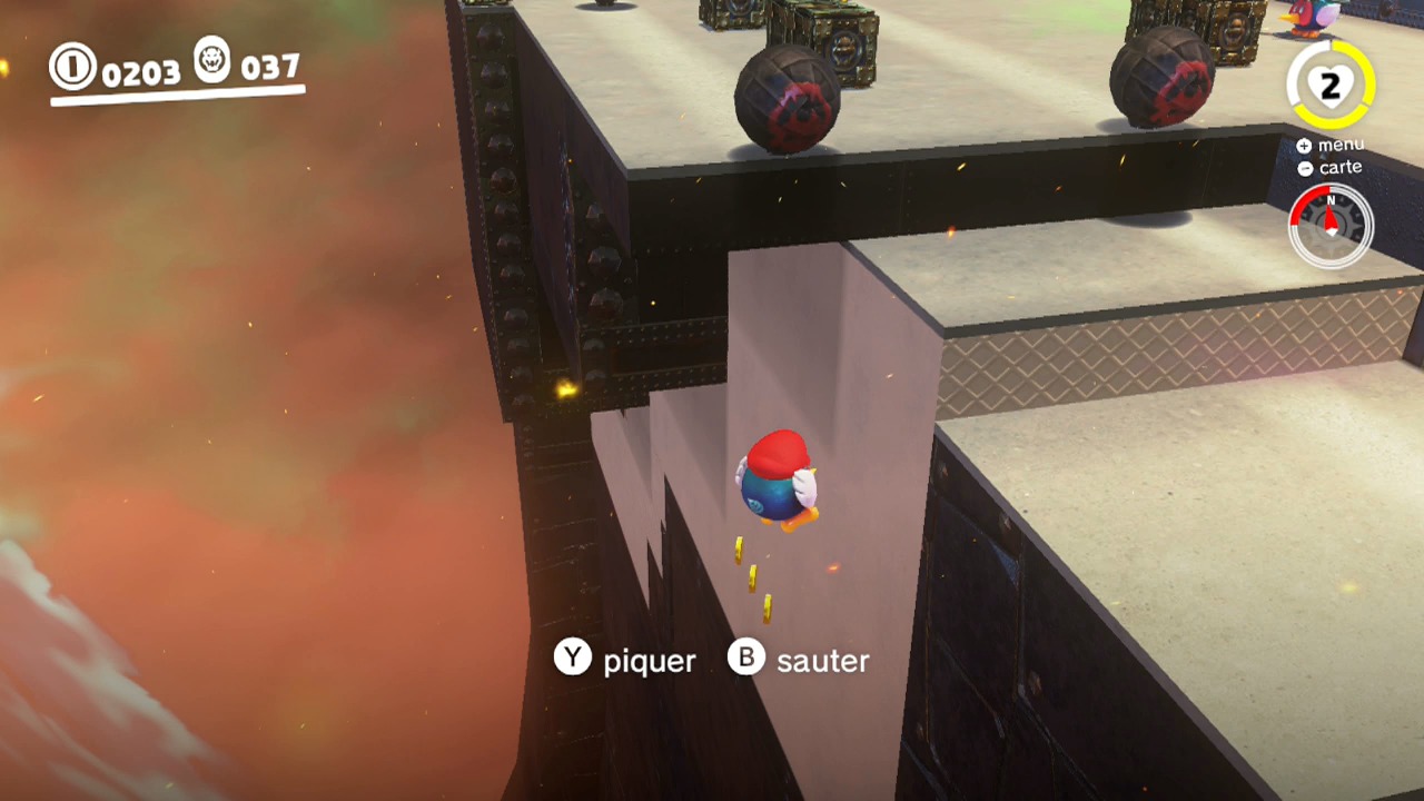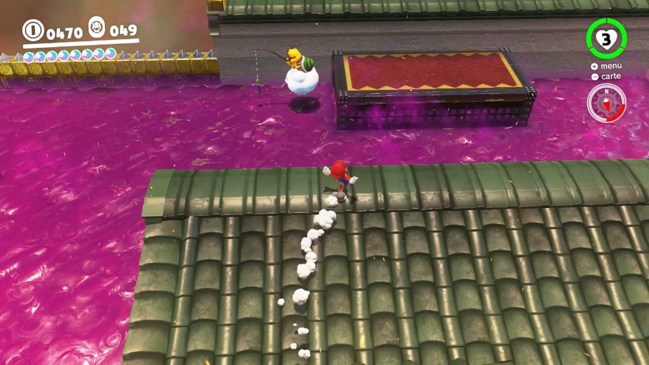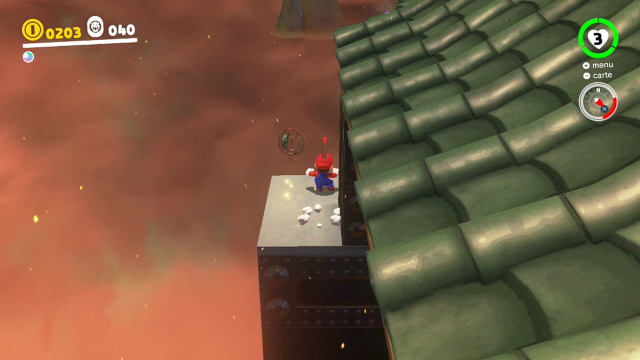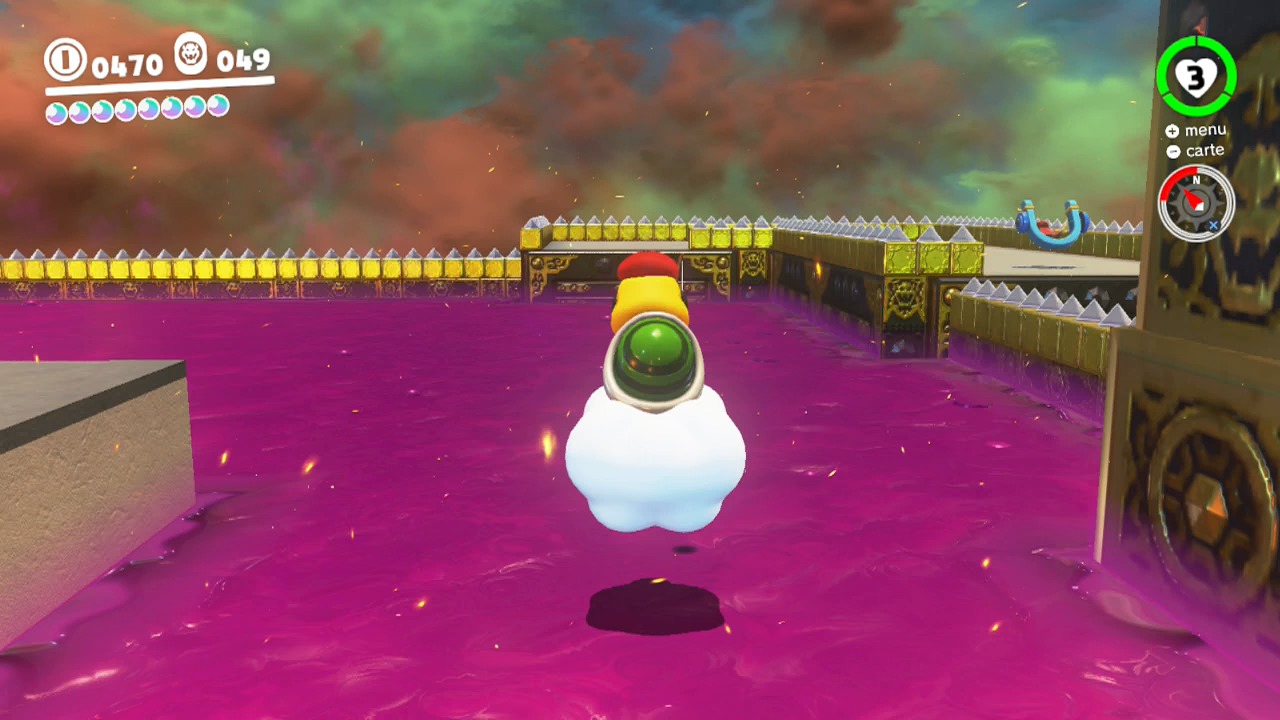 Possédez-le avec Cappy et traversez complètement la zone. Repérez tout au nord la plateforme où vous pouvez débarquer.