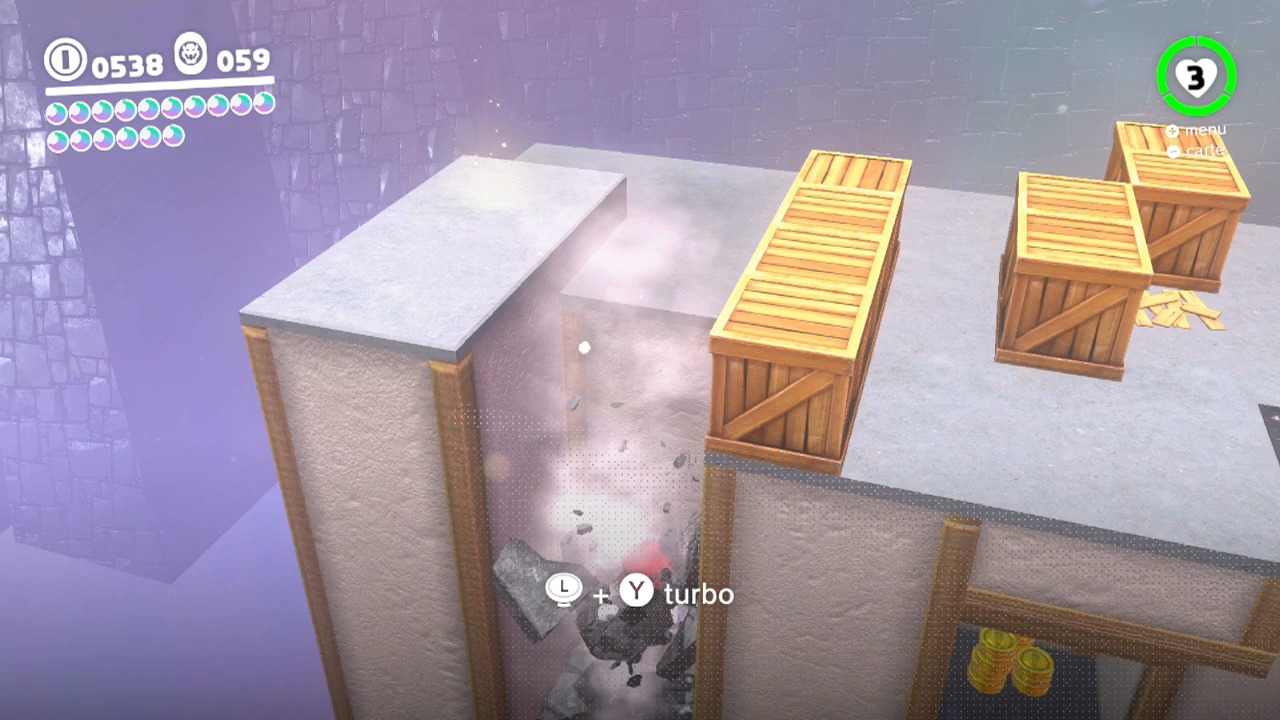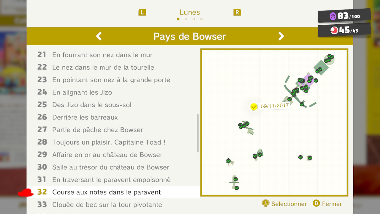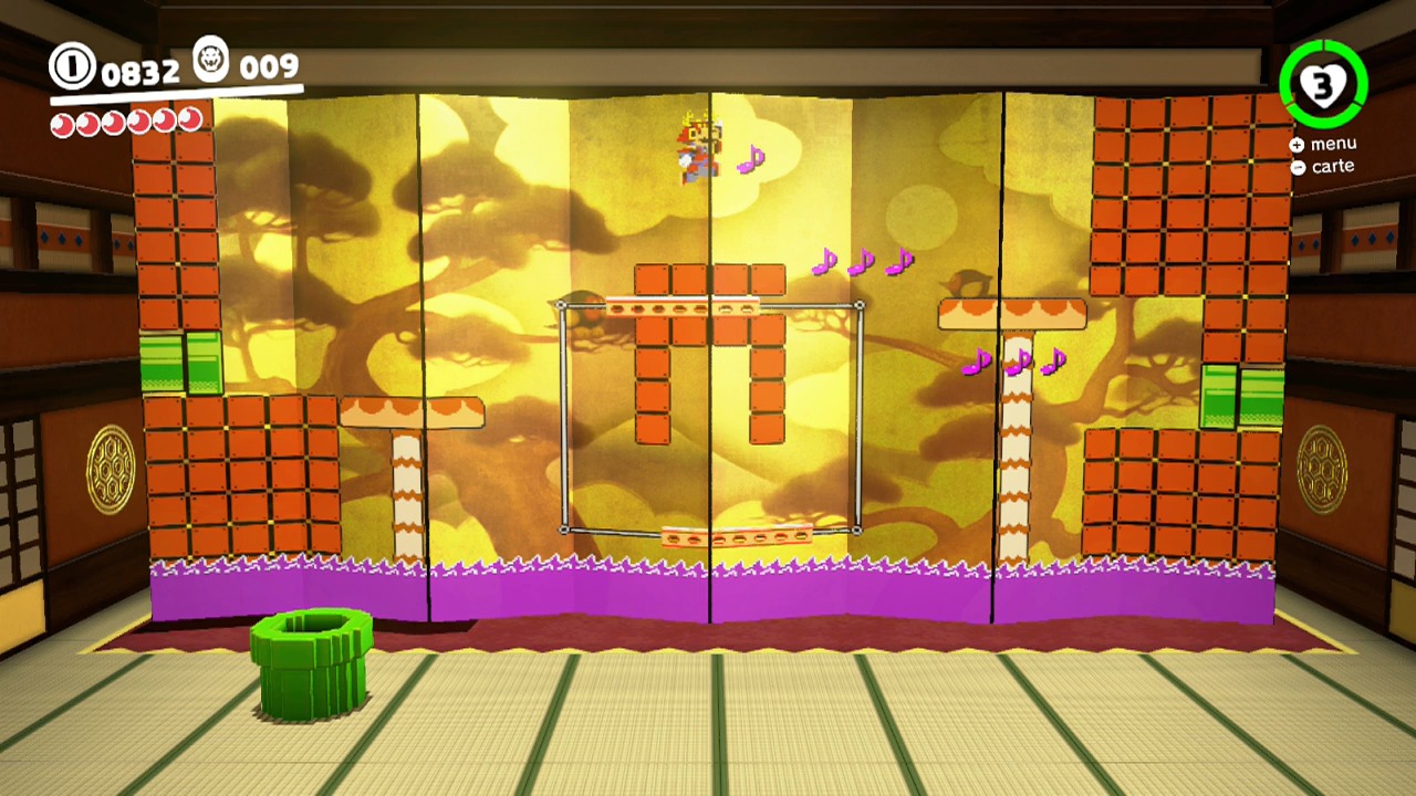 Une note de musique se trouve dans le niveau rétro du paravent. Collectez toutes les notes dans le temps imparti pour récupérer une lune.