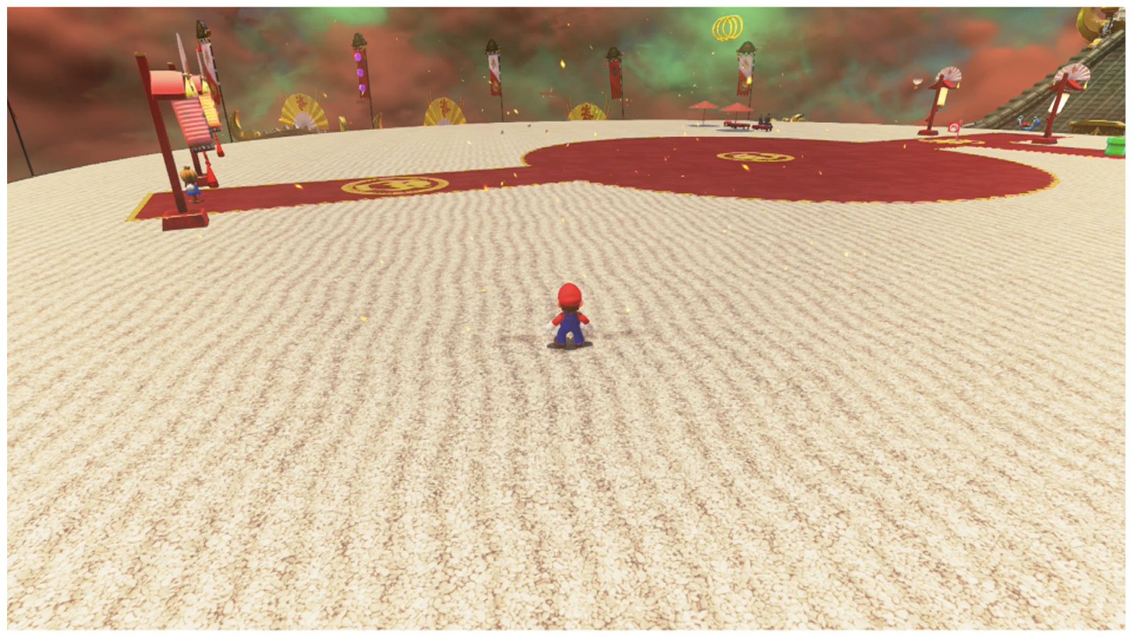 Dans l’arène de Bowser, il y a une lune cachée dans le sol sans indications visuelle. Pour la repérer, ressentez la vibration HD dans votre manette. Vous pourrez même ressentir la direction et la distance à laquelle elle se trouve.