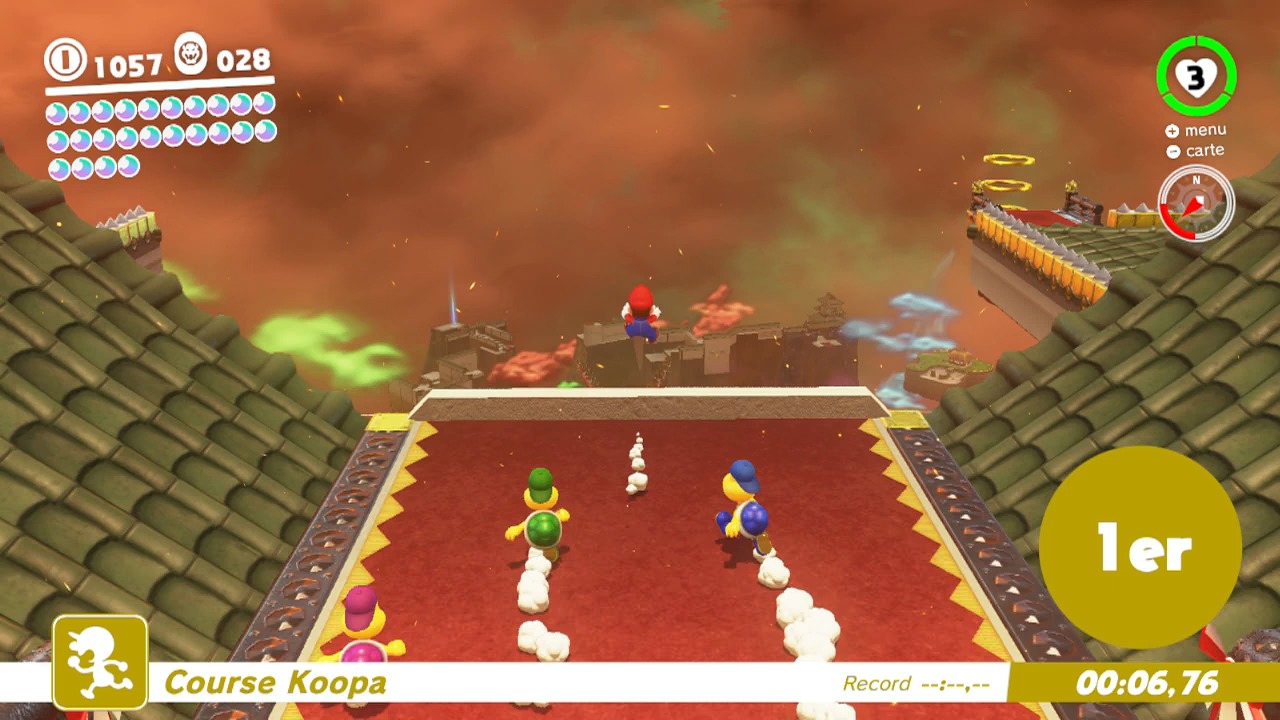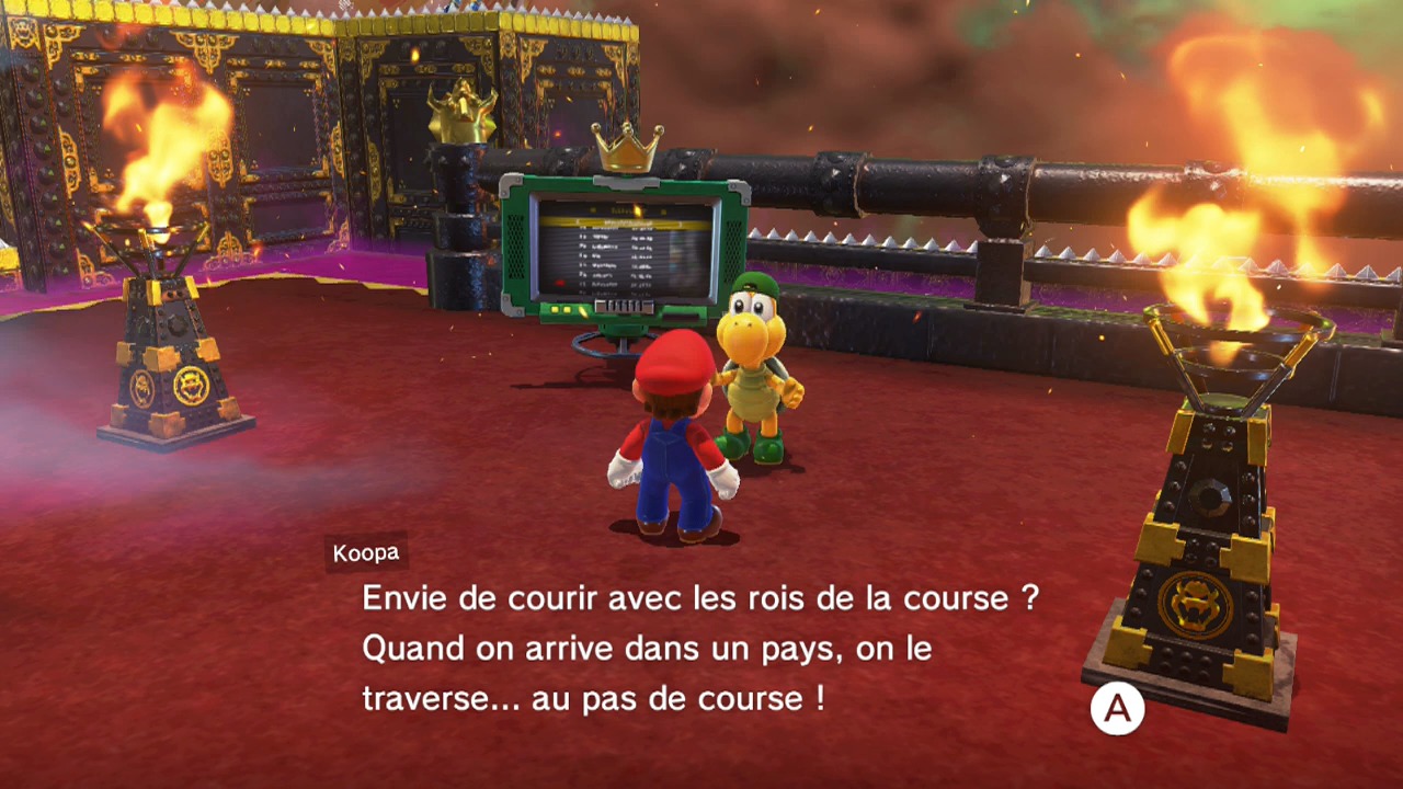 Rendez-vous à l’autel au pied du donjon. Il y a un Koopa avec une casquette qui veut vous défier à la course.