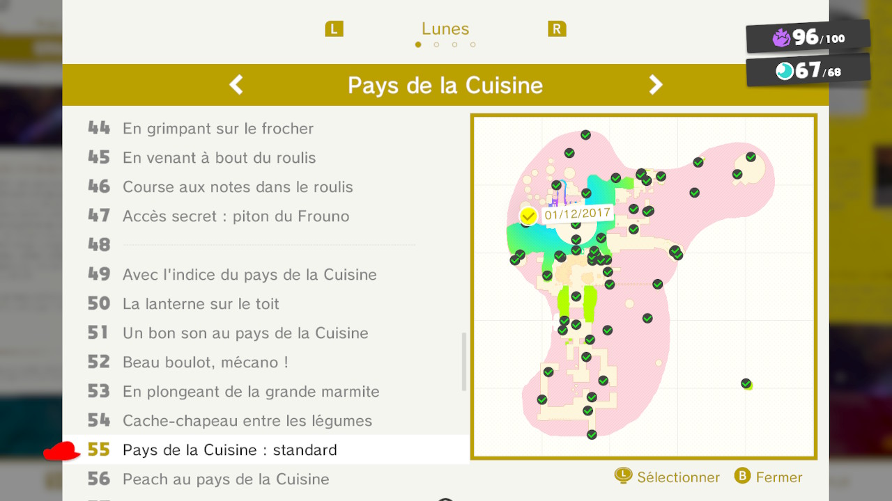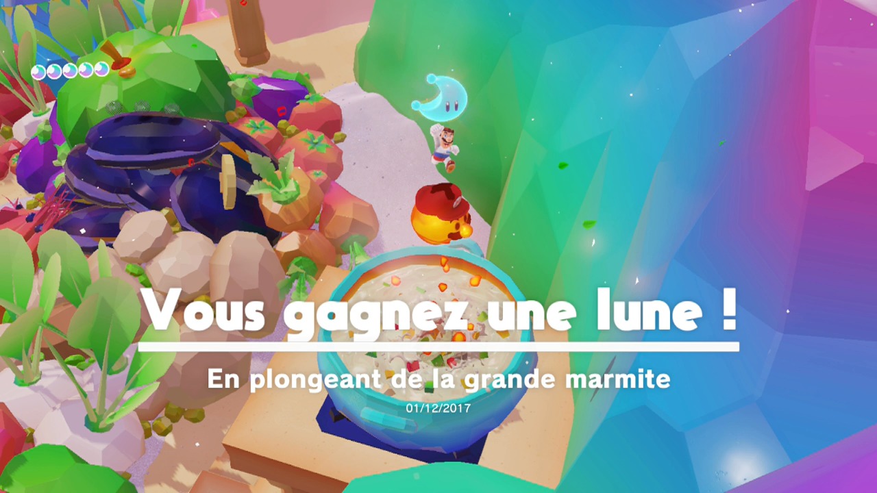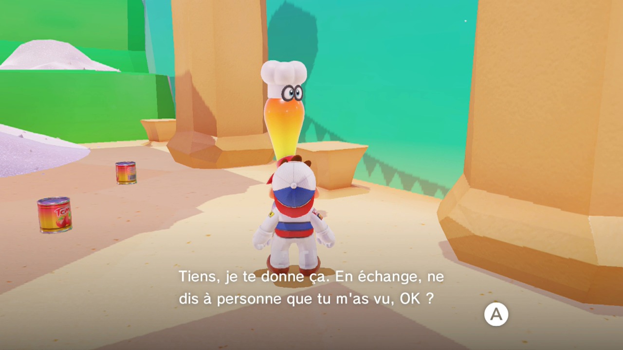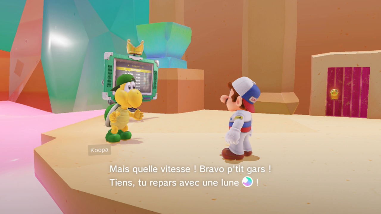 Il n’y a pas vraiment de raccourcis pour cette course. Si elle est dangereuse, il faudra néanmoins être téméraire. Prenez des risques et sautez sur les plateformes les plus éloignées possibles pour atteindre le début du sentier. Utilisez le saut Cappy spécial après un saut en longueur pour atteindre un maximum de distance en terminant avec un plongeon (ZL > Y).