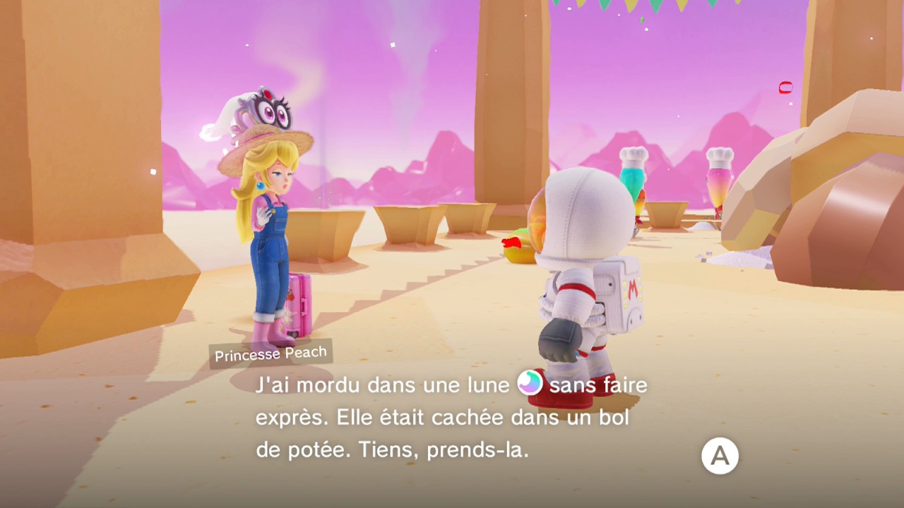 Peach est près de la grande marmitte dans le village après avoir battu Bowser.