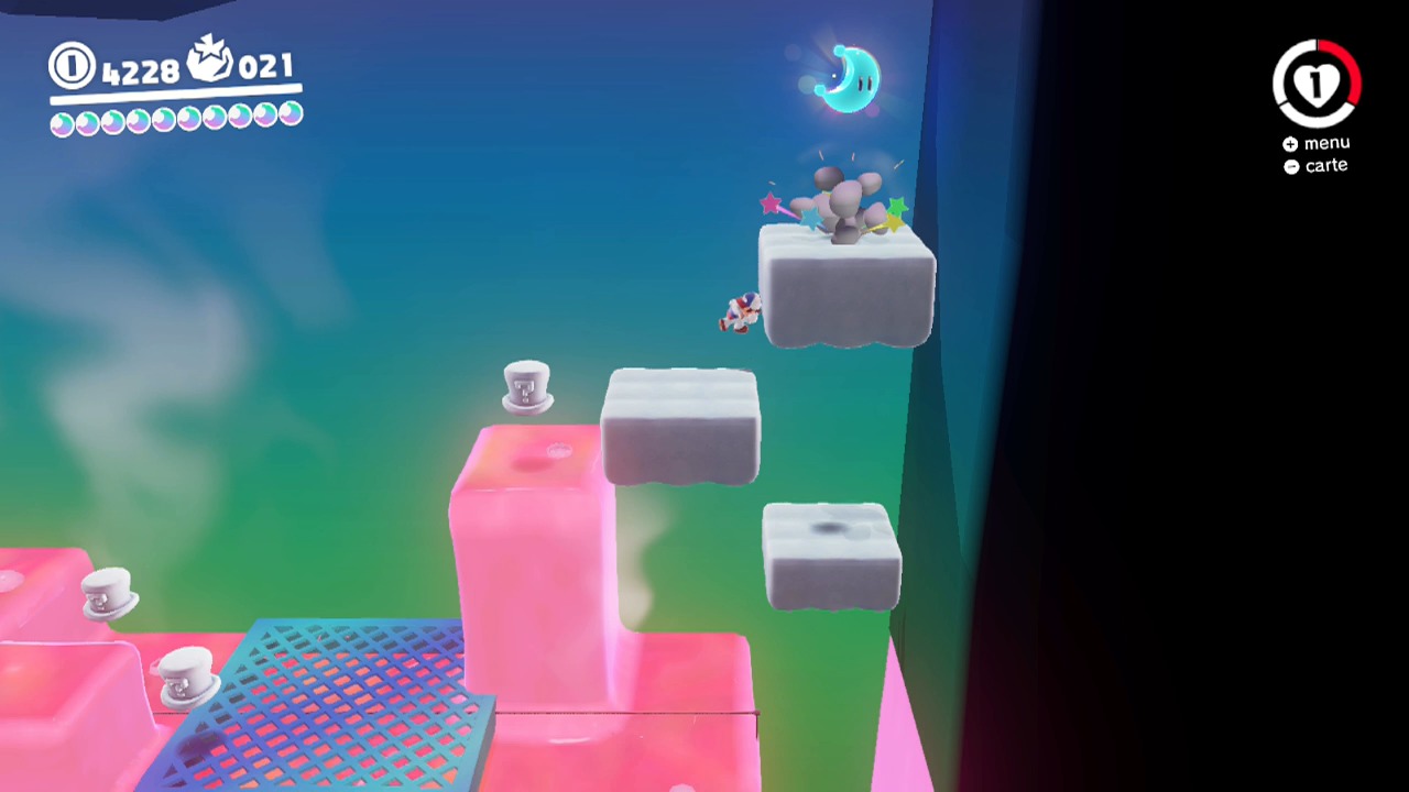 À mi-parcours, les premiers chapeaux rencontrez vous permettent d’atteindre la lune.
