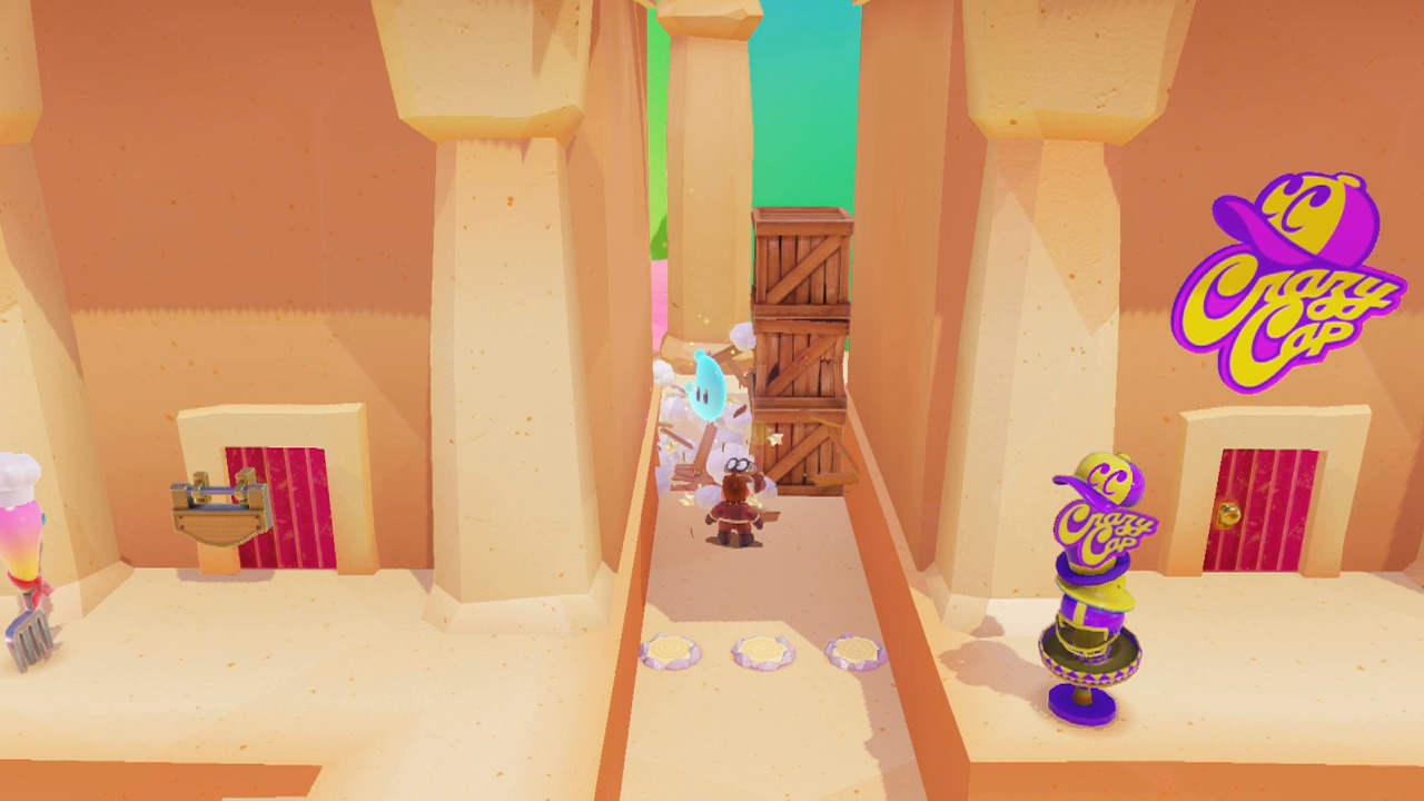 Une fois découverte, la lune ira se poser sur la le toit de la maison de droite. Sautez entre les murs pour y accéder.