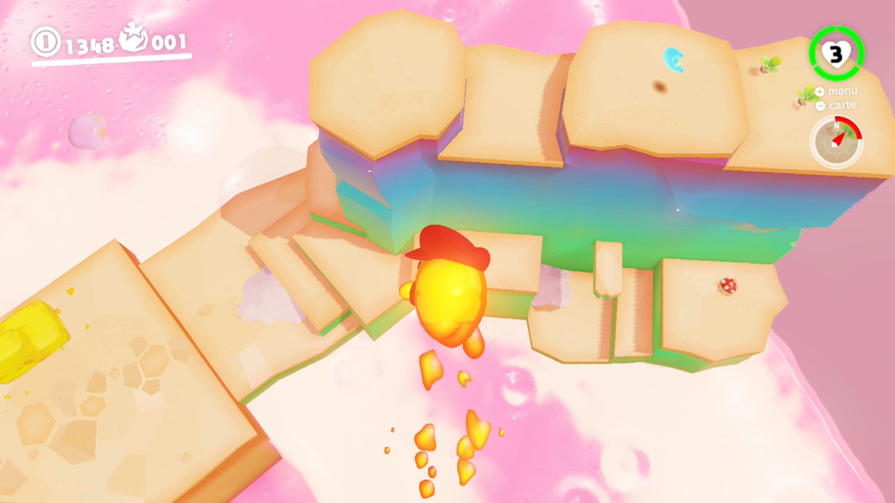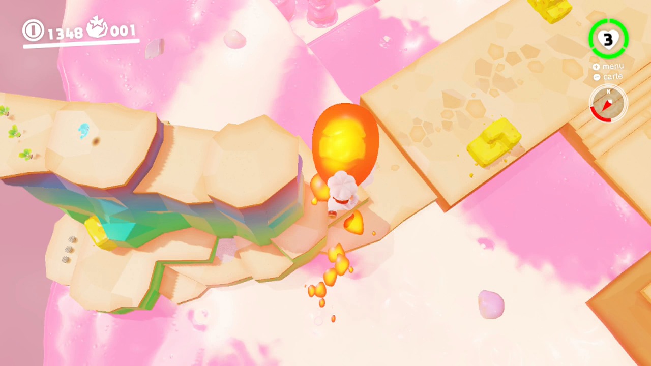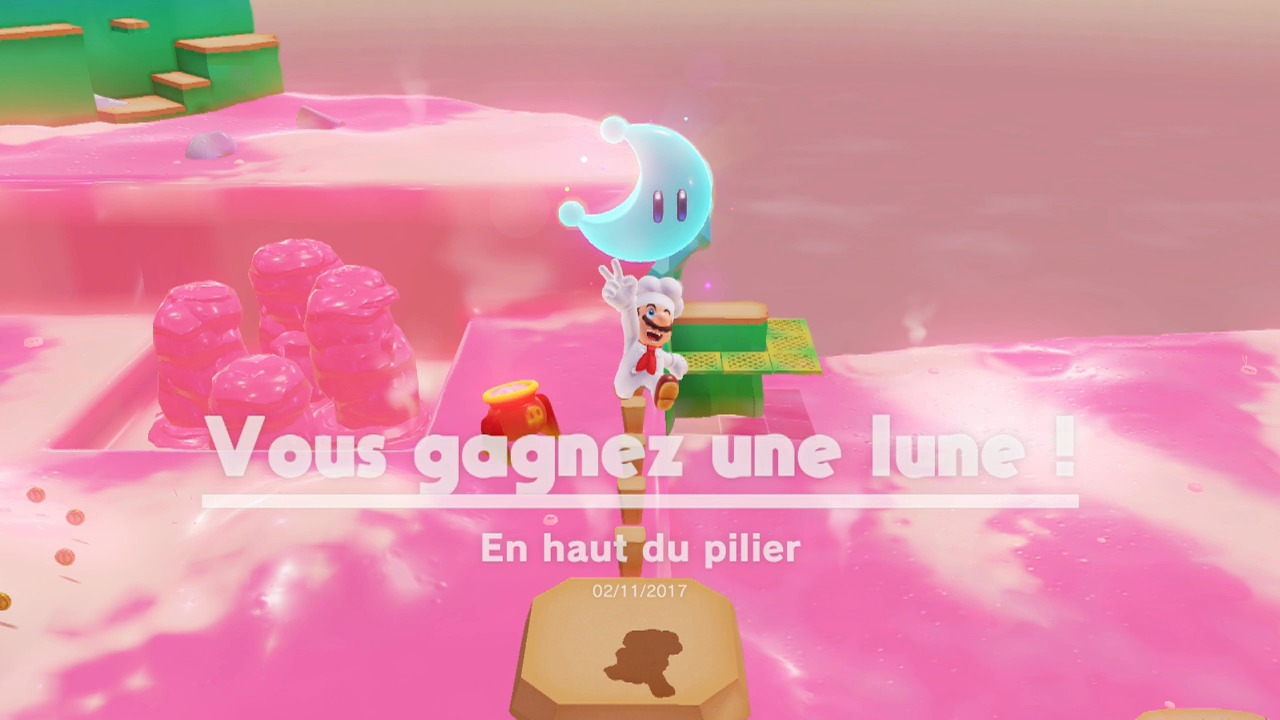 La lune est cachée sur un pilier du village. Pour la dénicher, montez d’abord sur le gros fruit jaune près de la marmite.