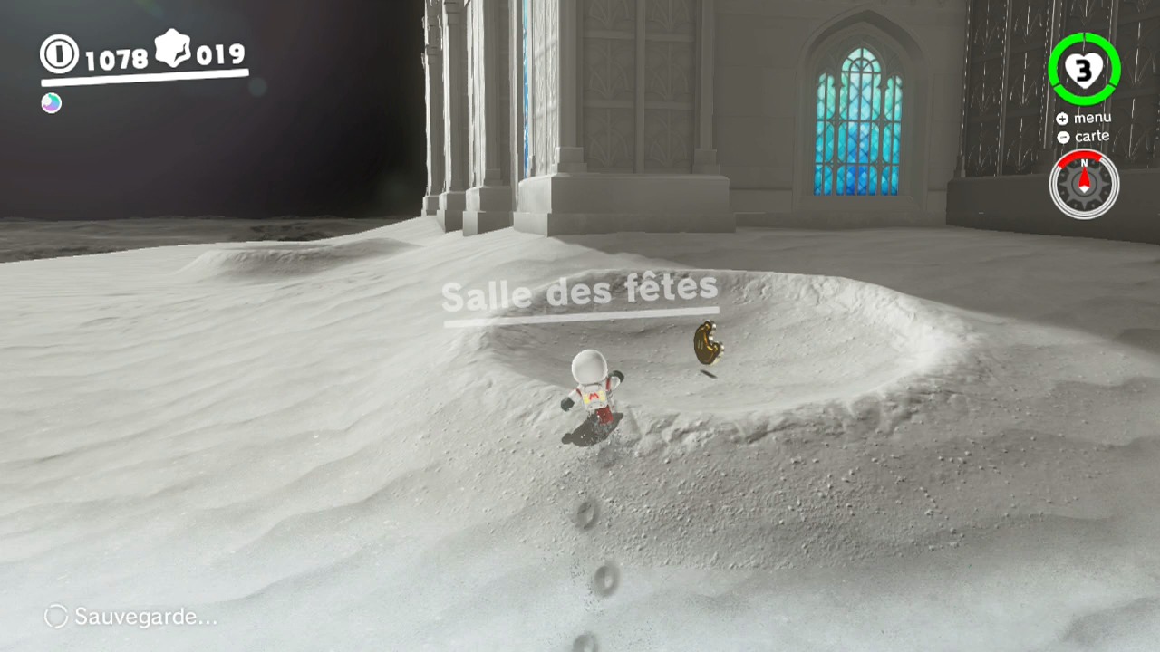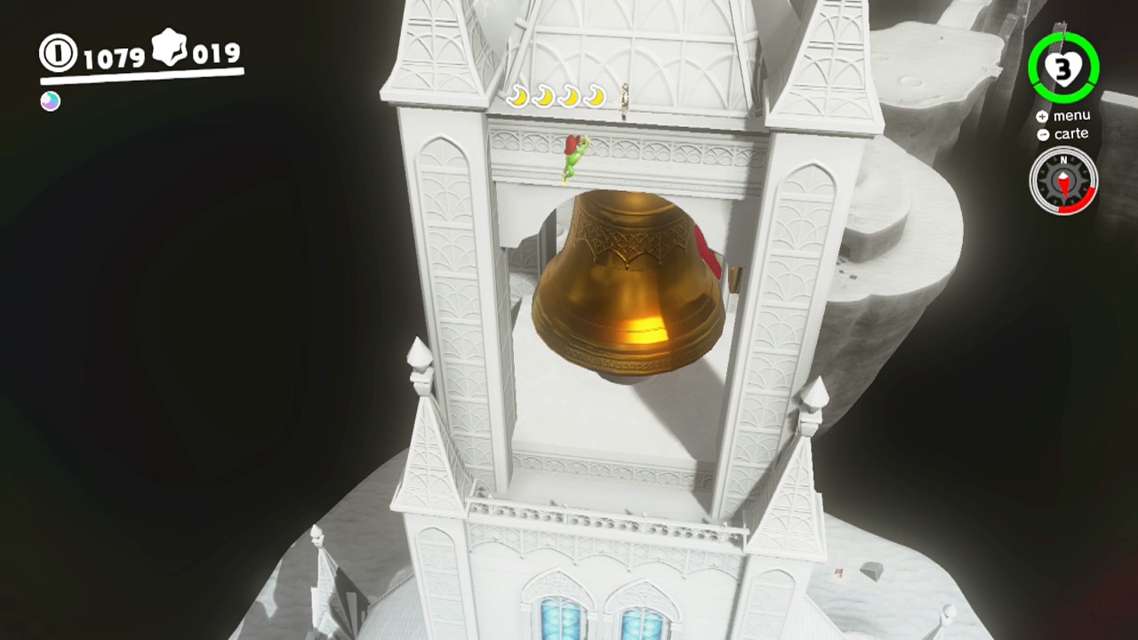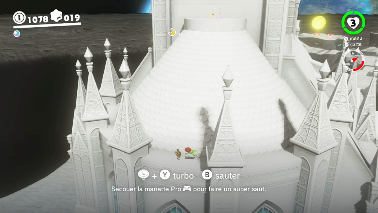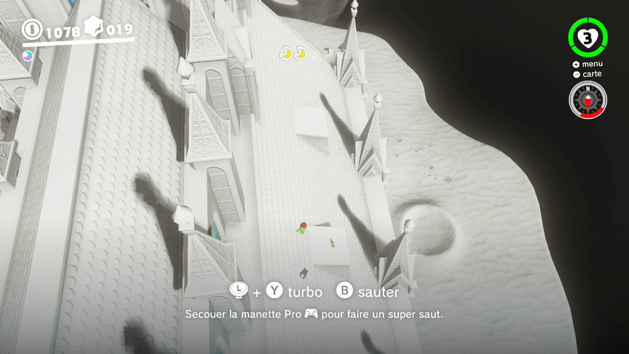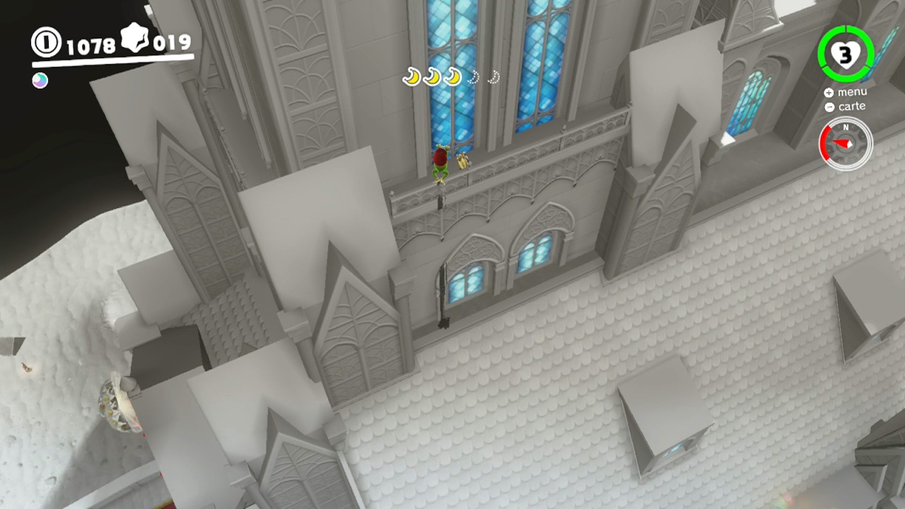 Il y a des éclats de lune près de la salle des fêtes. Possédez la grenouille derrière le bâtiment pour sauter bien plus haut grâce à la gravité lunaire.