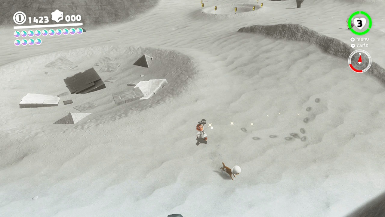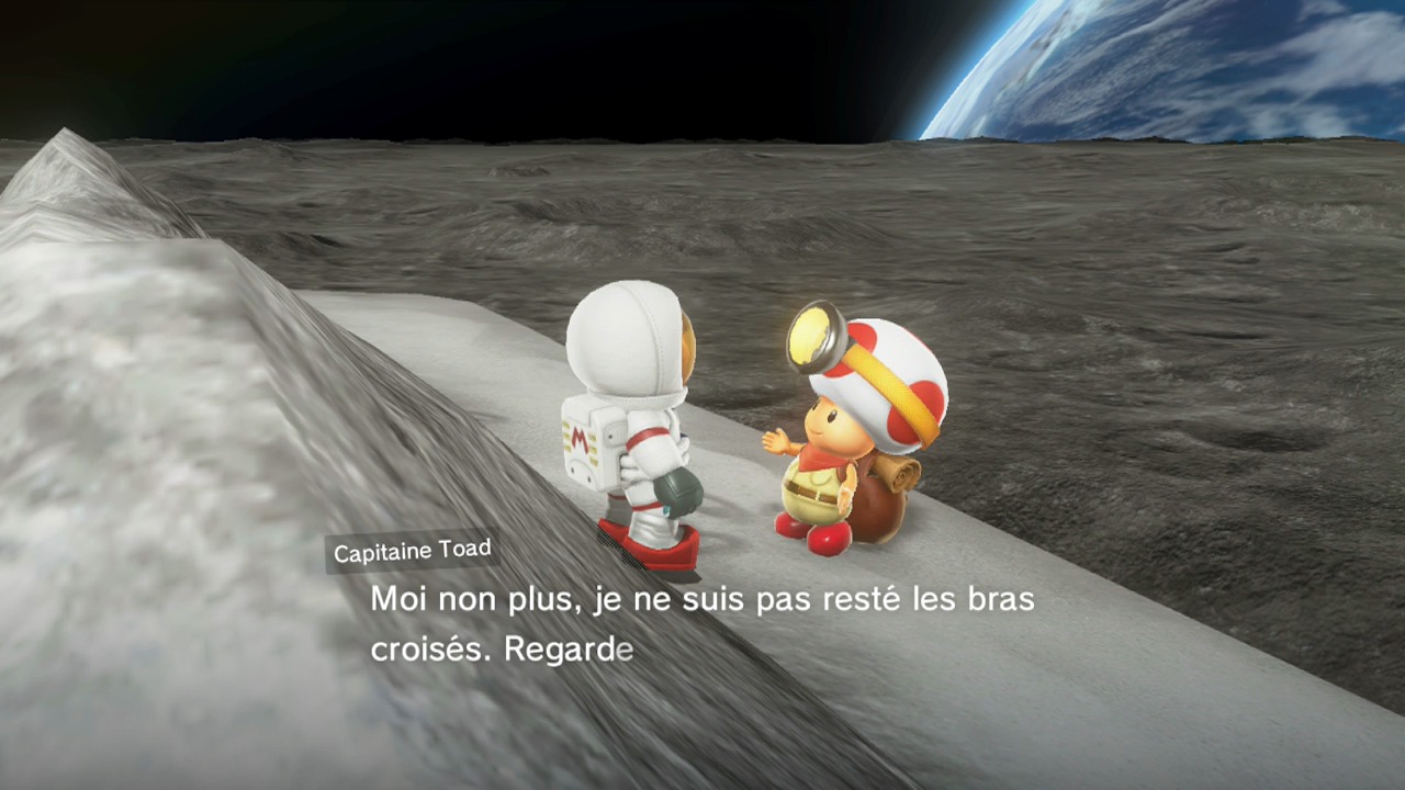 Après avoir battu Bowser, Capitaine Toad admire le paysage avec les autres touristes du monde, pas loin de l’Odyssée.