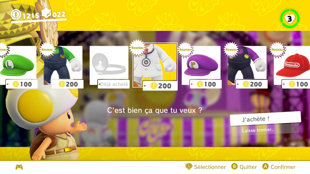 En premier lieu, achetez le costume de Dr.Mario à la boutique