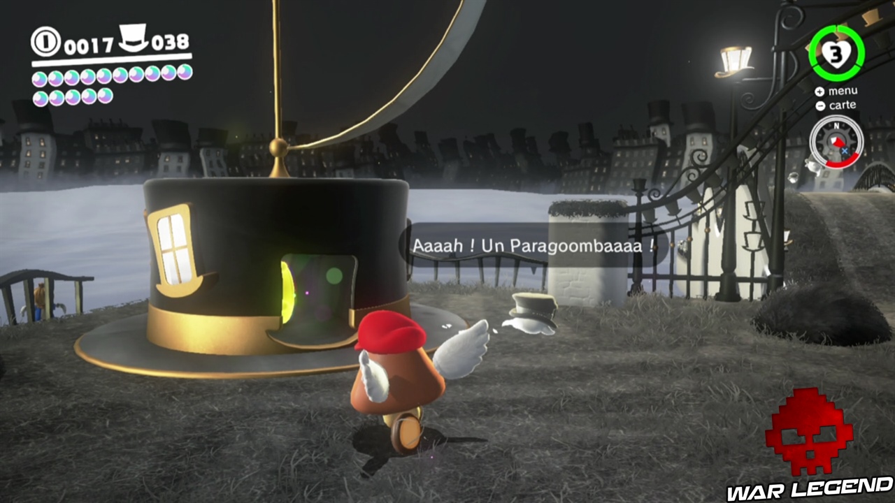 Pour trouver cette lune, parlez au chapeau sur le toit de la maison, celui-ci vous parle d’un trésor qu’il a oublié. En faite il va vous donner des indications qu’il faut suivre une à une.