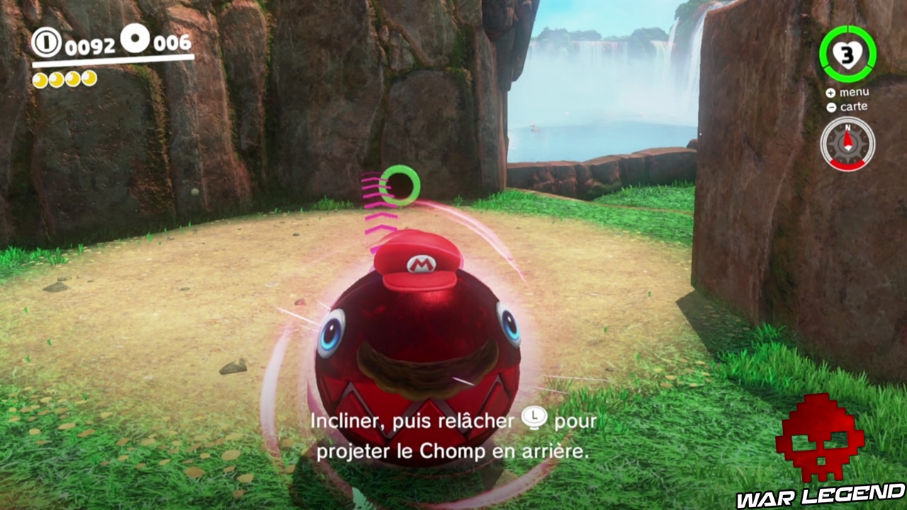 Cette Lune se trouve proche de l’odyssée. Prenez possession du Chomp pour détruire le rocher cassable contre le mur, cela dévoilera un tuyau menant sur une falaise. La lune vous y attends sagement.