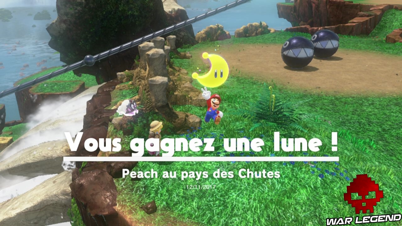Rien de plus simple pour récupérer cette lune, parlez à Peach qui se trouve tout en haut du Pays des Chutes, au point jaune ci-dessus.