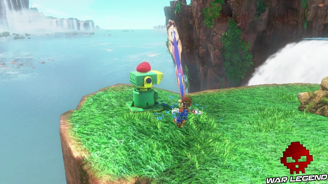 Note importante : Cette lune s’accède via un tableau portail. Le tableau portail menant à cette lune peut être différent, cela dépend de l’ordre de visite des royaumes, parfois il y a un choix à faire, et c’est ce choix qui détermine quel tableau portail amène à la lune. Cette lune 18, qui se trouve sur une ile dans le ciel du Pays des chutes. Lors du choix de visiter le Pays des Neiges ou le Pays de la Mer : Pays des Neiges en premier : Le tableau portail se trouve dans le Pays des Neiges. Pays de la Mer en premier : le tableau portail se trouve dans le palace crystale, au centre du Pays de la mer. Il faut avoir battu le boss de ce pays et finir le jeu pour accéder au tube centrale, ensuite il faut descendre tout en bas pour y trouver le tableau.