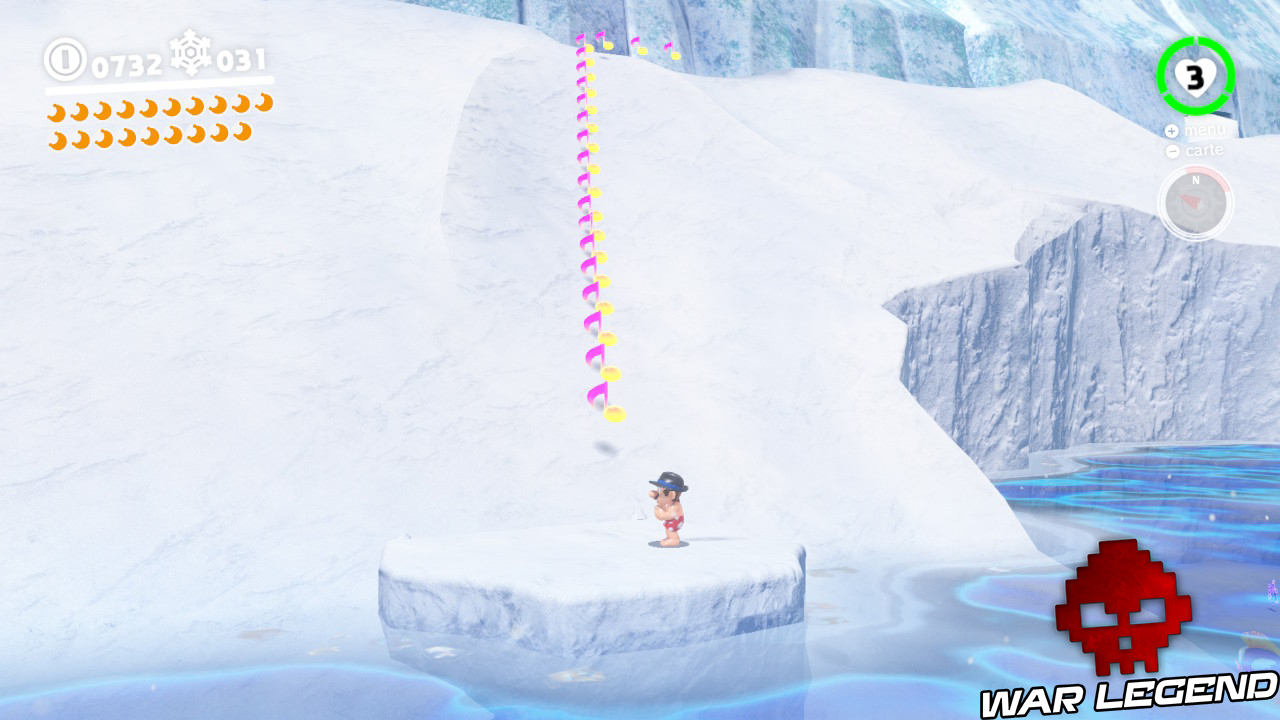 Dans la paroi de la falaise, vous trouverez un petit trou empli de neige. Foncez dedans pour trouver Capitaine Toad.