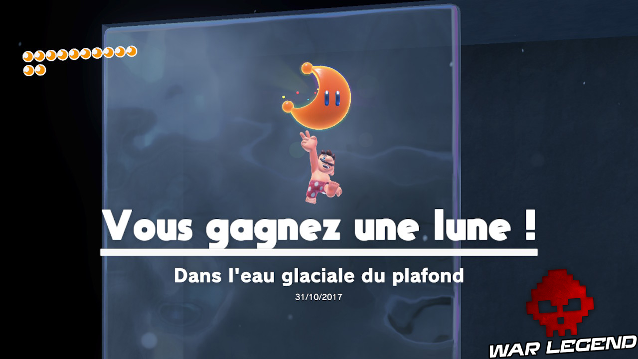 Sautez ensuite dessus et traversez le bloc de glace au plafond. Partez sur la gauche et ne vous souciez pas des trous : sprintez pour sauter récupérer la Lune.