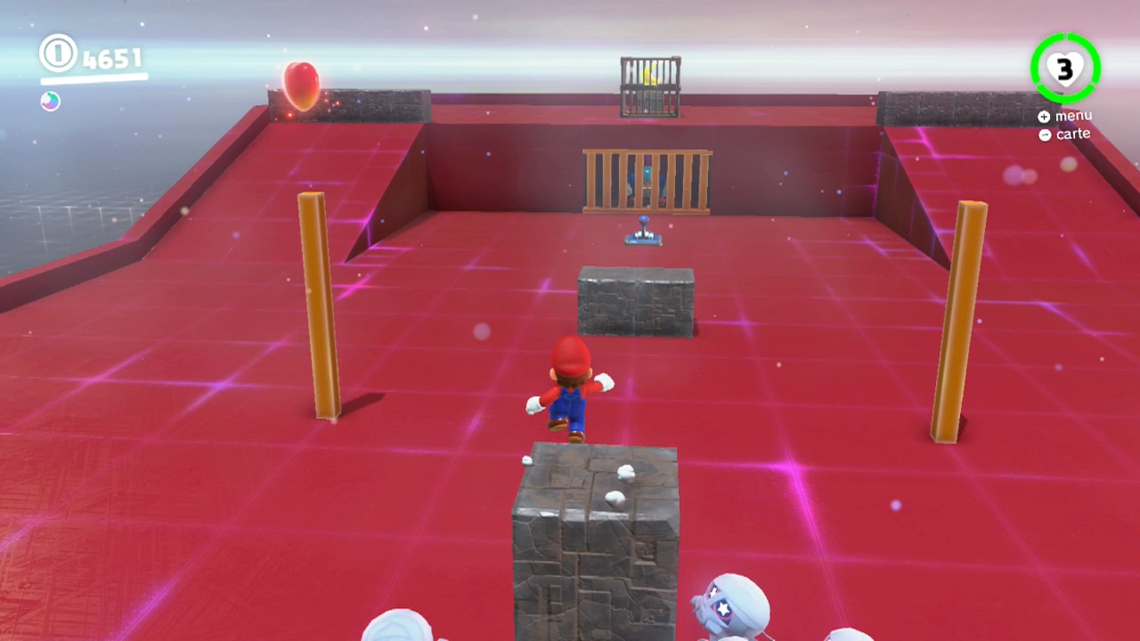 Utilisez Cappy sur le levier et Chapimorphosez le Bille Dozer. Détruisez tout sur votre passage, faites-vous pas mal d’argent (il y a une cache de pièces à l’opposé), et libérez la lune de sa cage.