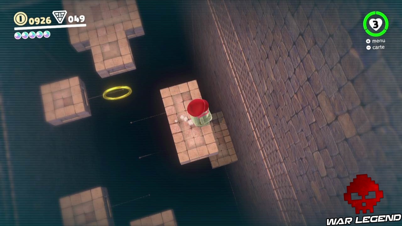 Voici les dernières lunes du Pays… la 84 et la 85 se trouvent dans un tuyau lunaire au niveau du point jaune ci-dessus. Avec le Ma’tuvu foncez à la fin du niveau pour récupérer la lune 84, n’oubliez pas la lune 85 également.