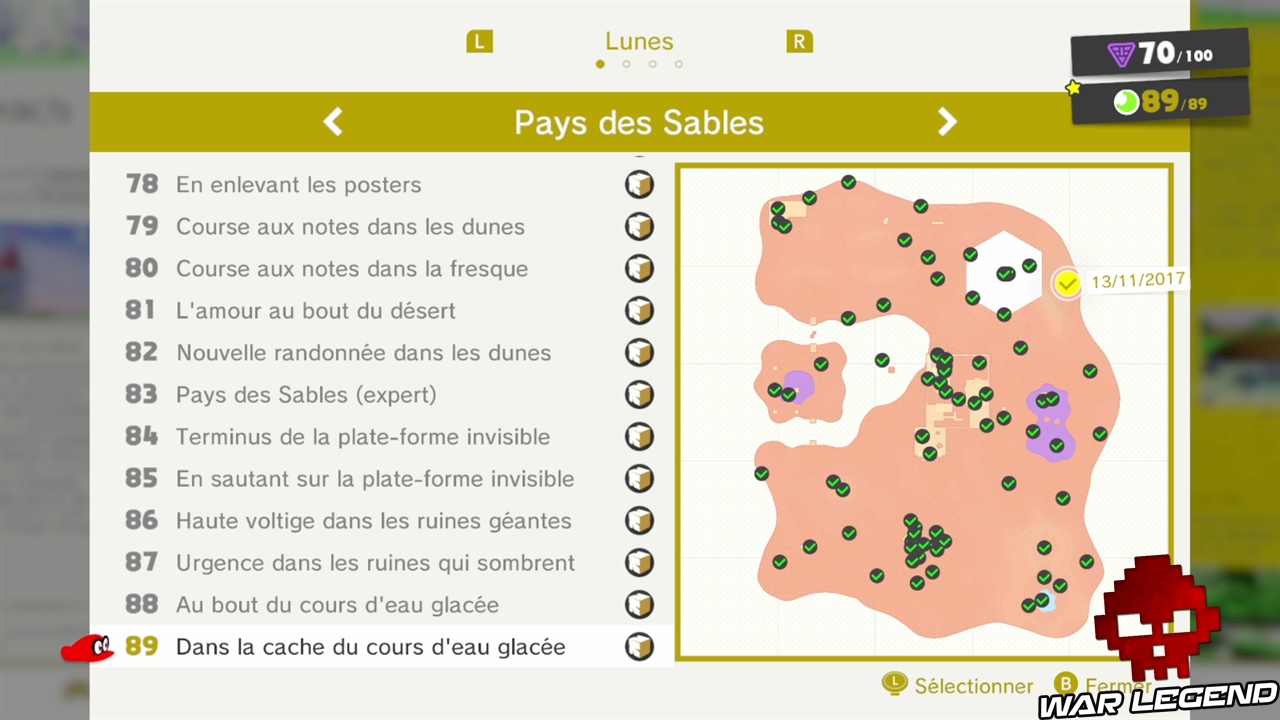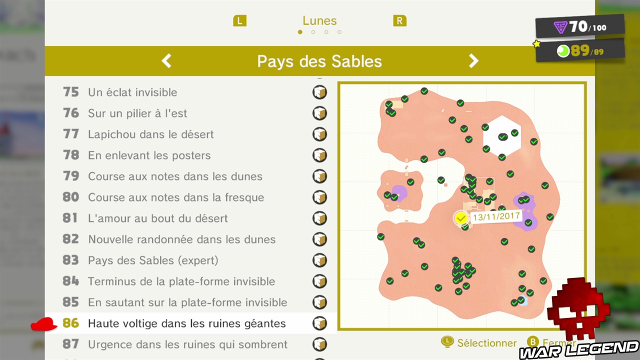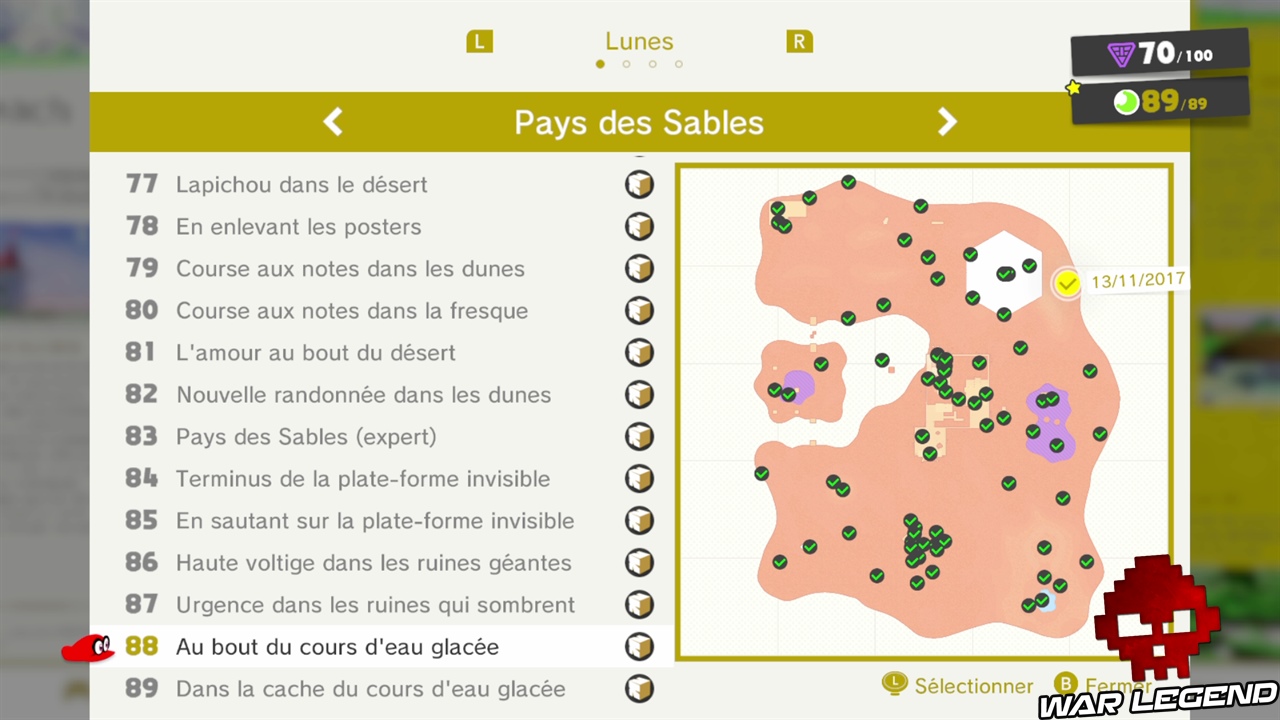 Cette lune se trouve environ au milieu du niveau, plutôt que de continuer vers la droite, à un moment montez au maximum possible et vous verrez un passage sur la gauche menant à cette lune 89.