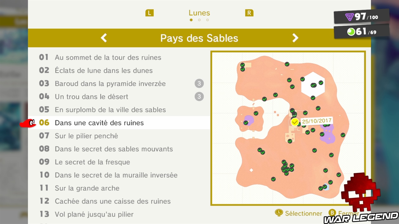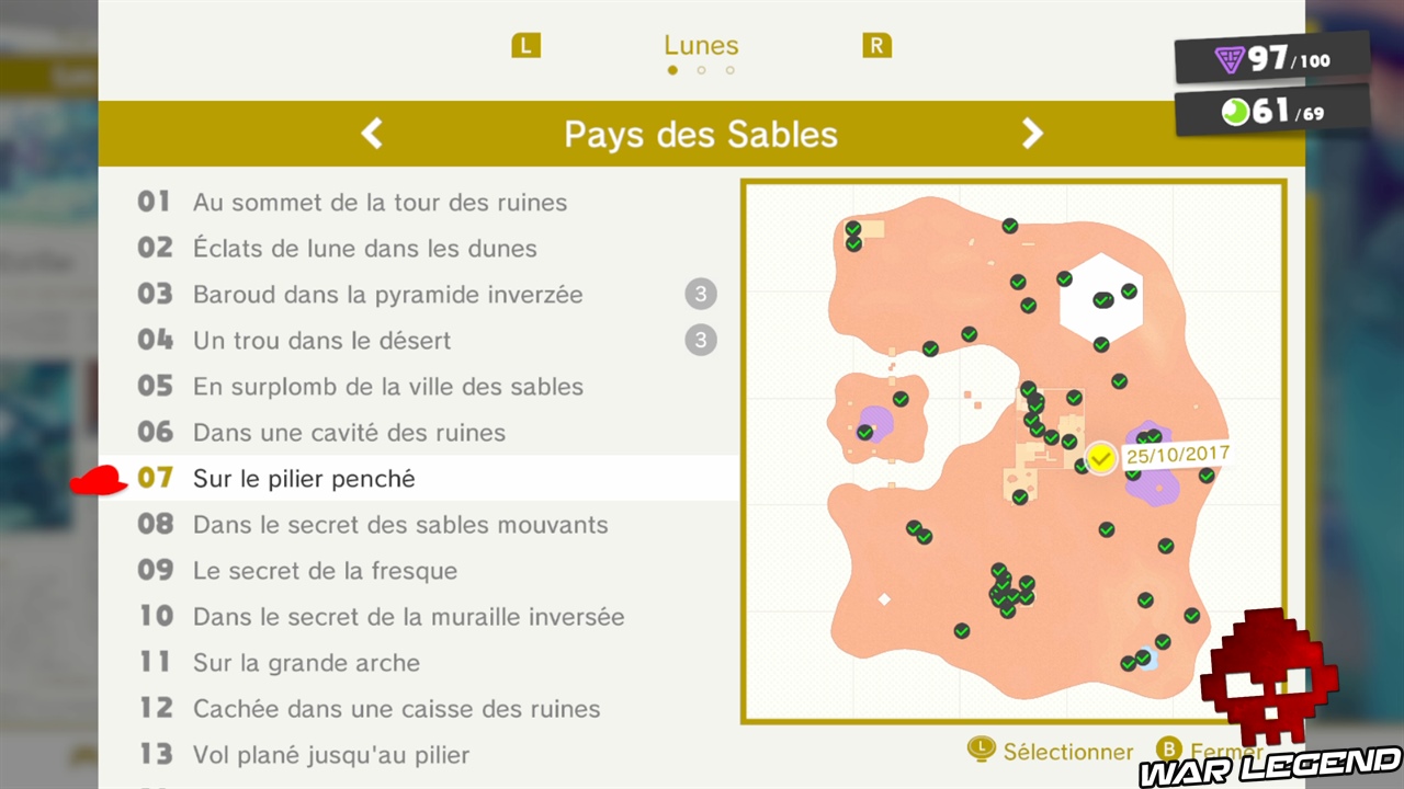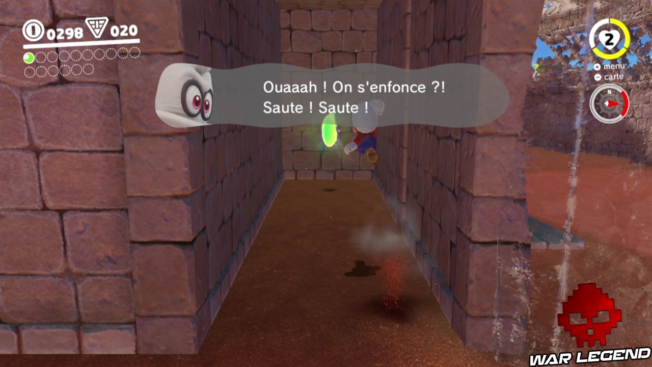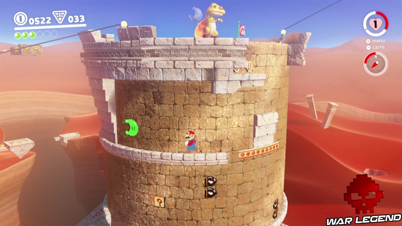 Depuis le sommet, sautez en direction du point jaune de la carte ci-dessus, du côté des sables mouvants qui dévalent la tour. Une petite cavité loge la lune.