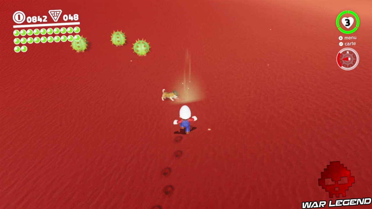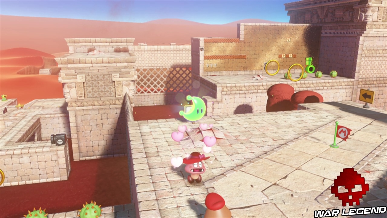 Téléportez-vous à l’entrée des ruines d’Ifézèc, prenez possession d’un Goomba, ensuite il faut rejoindre la Goomba fille, qui se trouve proche du point de téléport Piliers de sable des ruines d’Ifézèc.