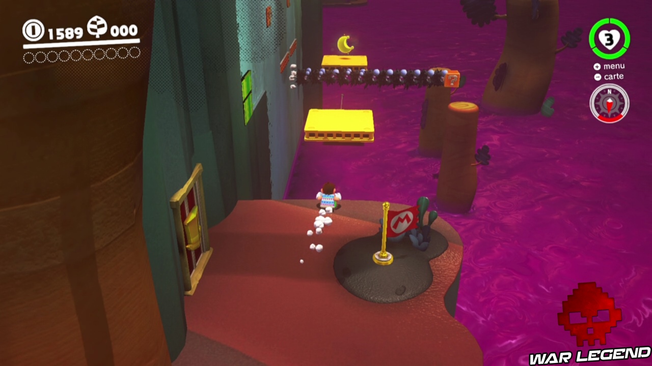 Une fois que vous avez récupéré votre chapeau, vous pouvez vous mettre en quête des 10 Lunes nécessaires à réparer l’odyssée et reprendre chemin vers le Pays des Gratte-ciel.