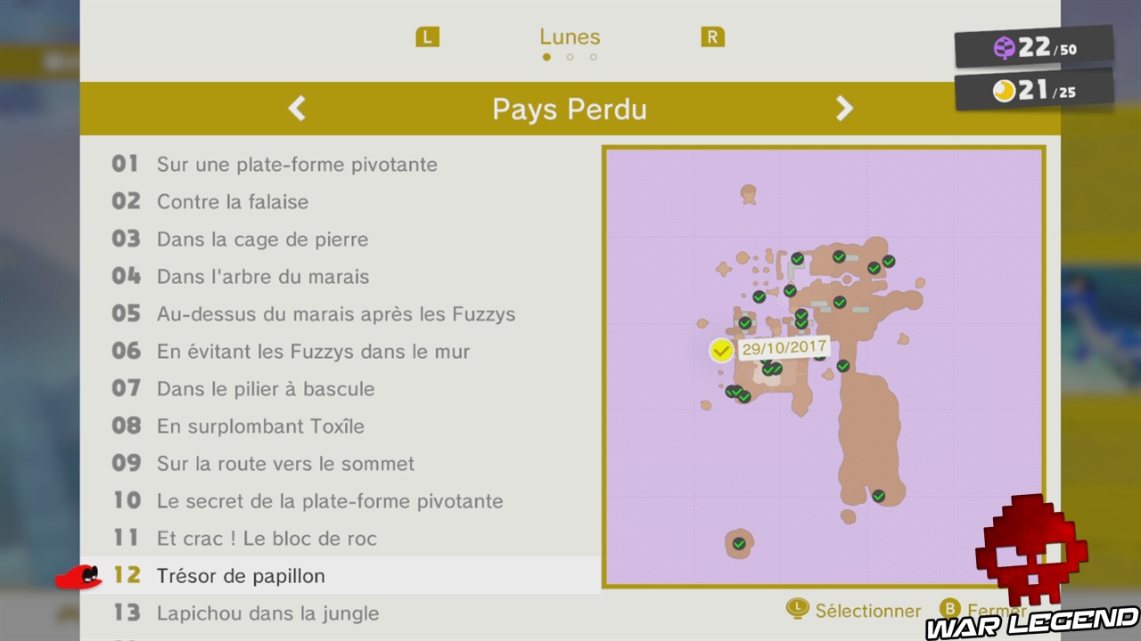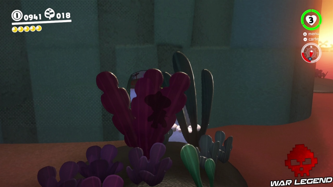 [Attention, le Lapin apparait seulement après avoir réparé l’Odyssé ! Il faut donc d’abord ramasser 9 lunes pour réparer l’Odyssé, cela vous fera voyager au Pays des Gratte-Ciel, puis revenez au Pays Perdu pour le trouver enfin. Merci à Justine.]