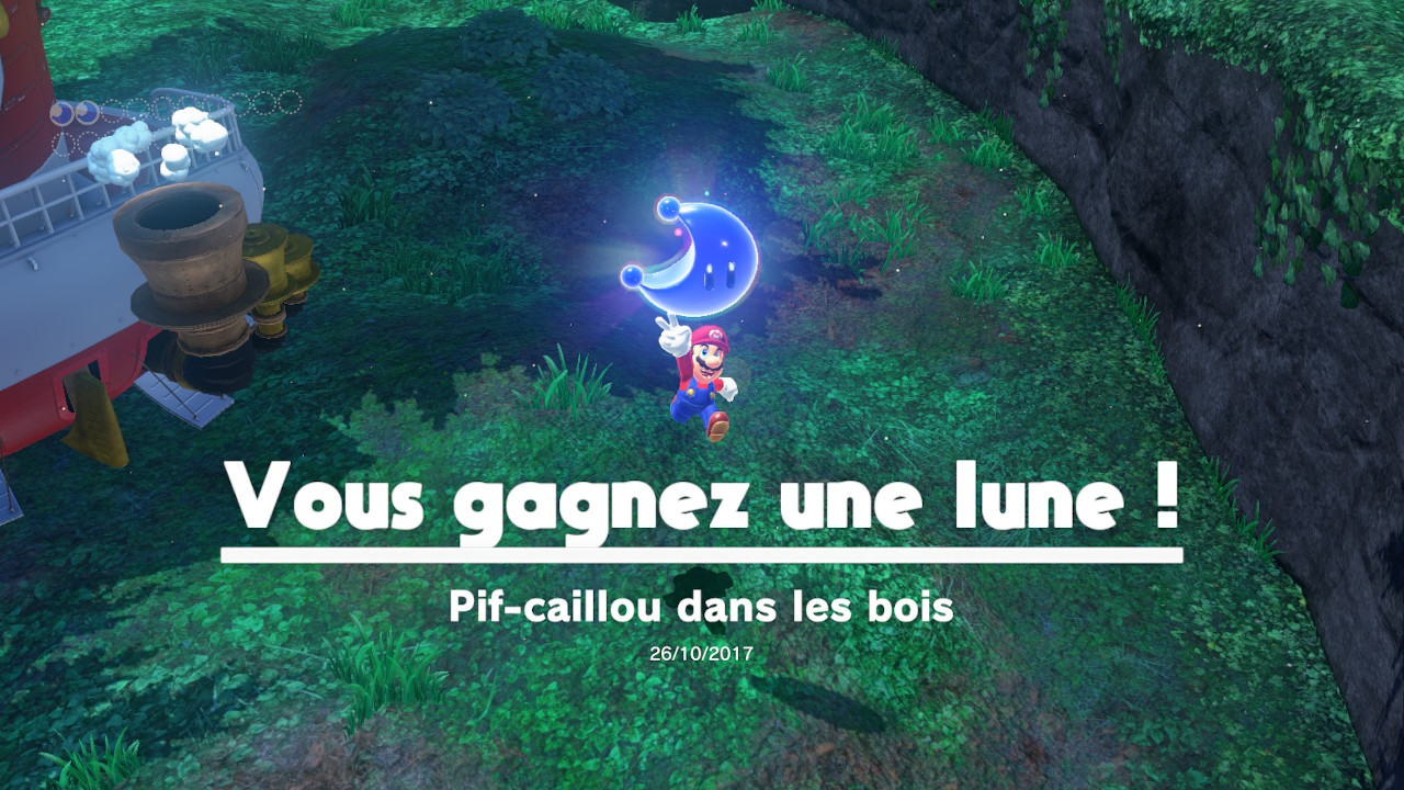 La lune se trouve dans un rocher en forme de boule dans la première zone, juste derrière l’Odyssée. Détruisez-là en la balourdant à répétition avec Cappy.