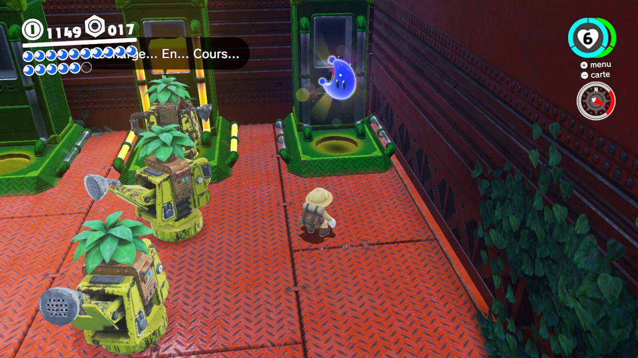 La lune est cachée dans la station de recharge des robots arroseurs de droite. Faites une charge au sol pour la révéler.